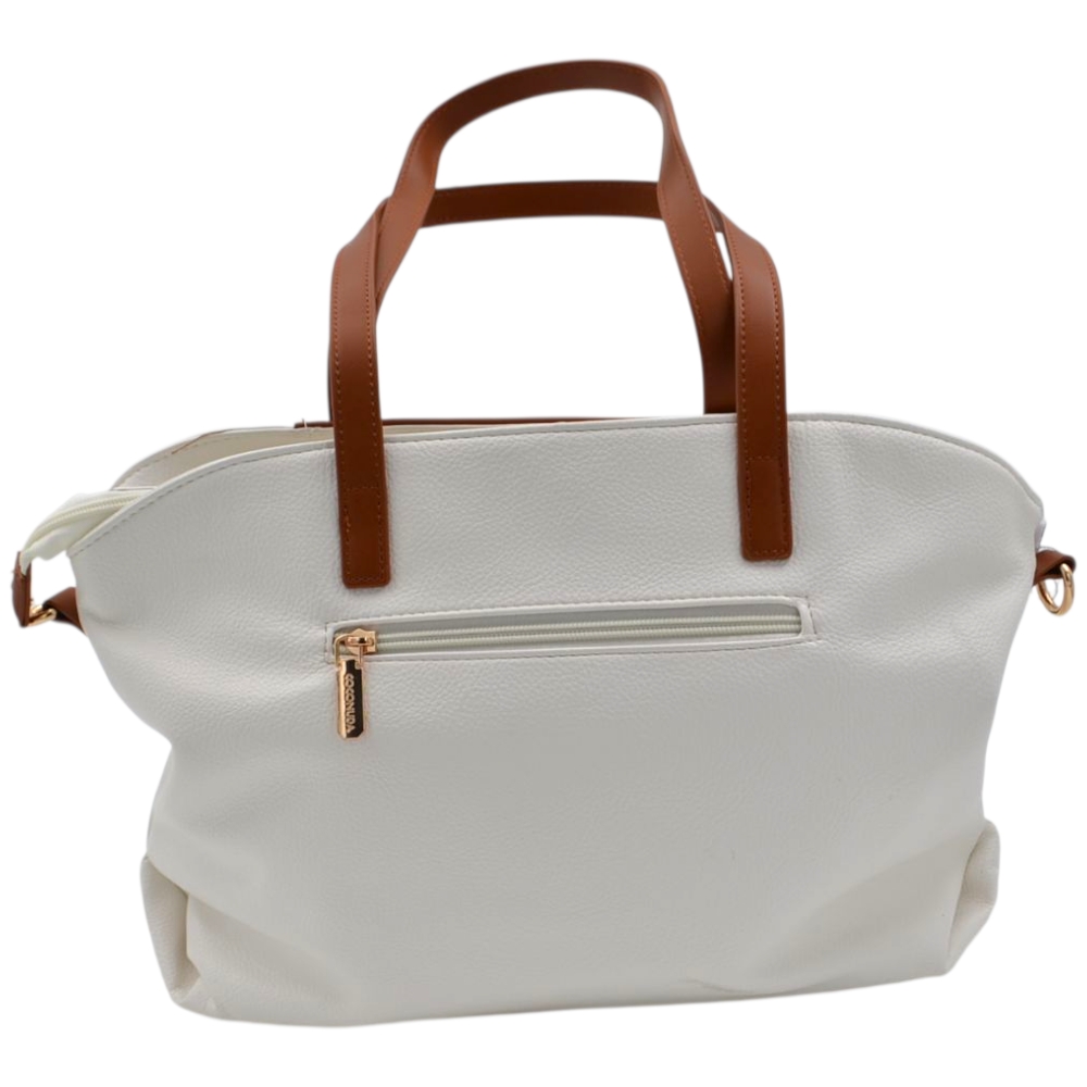 Borsa firmata shopping coconuda donna morbida a spalla con tracolla bianco e cuoio con zip dorata