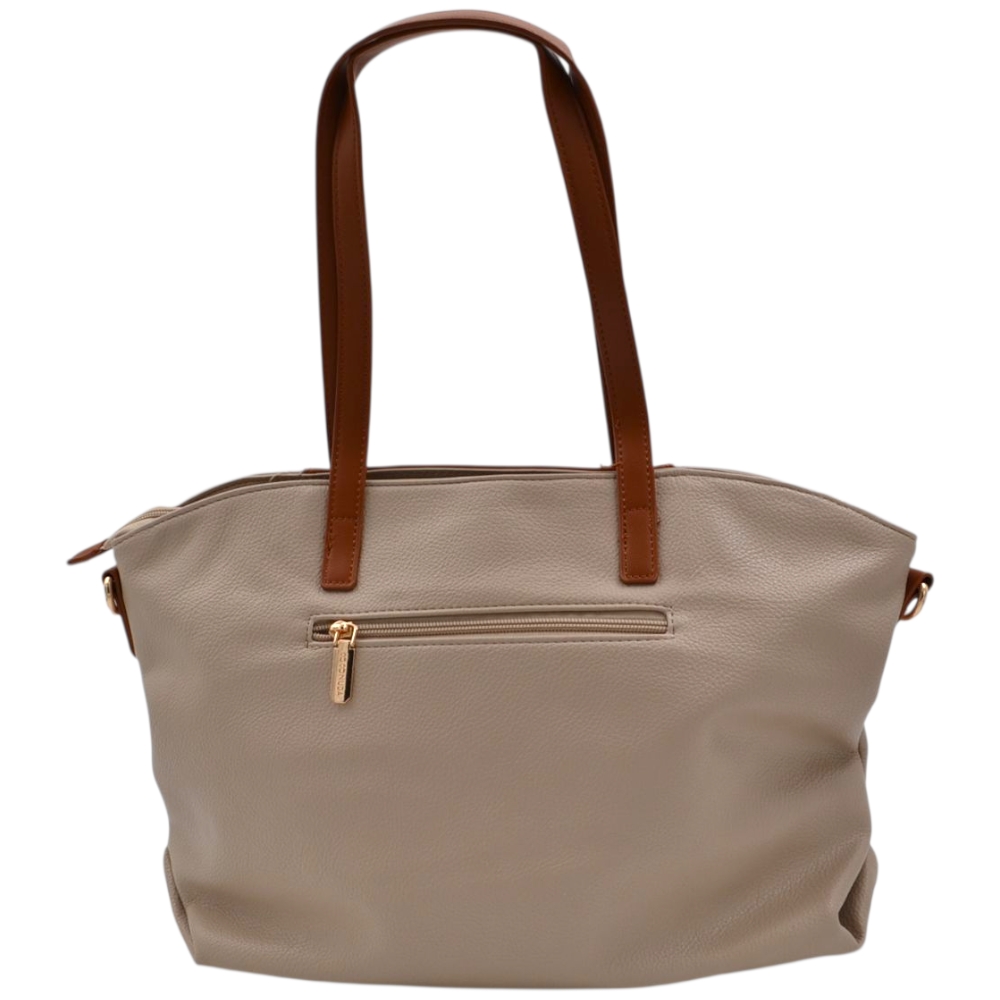 Borsa firmata shopping coconuda donna morbida a spalla con tracolla beige e cuoio con zip dorata