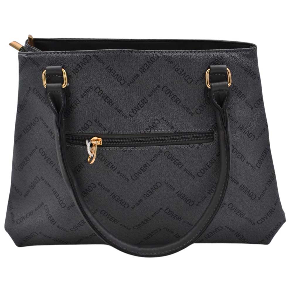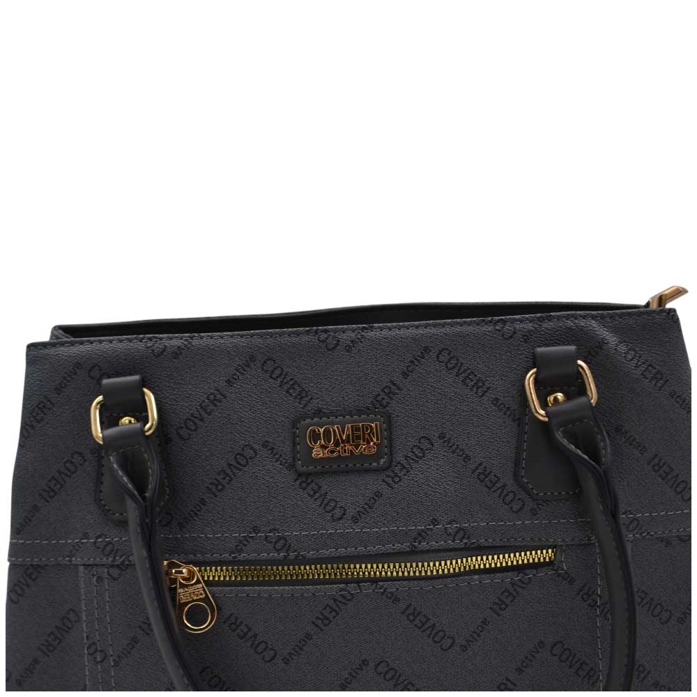 Borsa a spalla da donna firmata Coveri Active trapezio grigia con tracolla stampa monogramma zip dorate