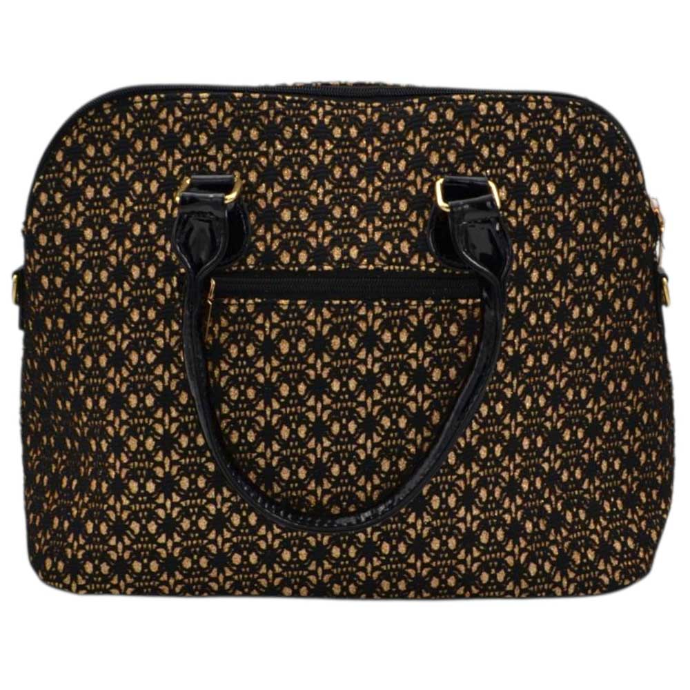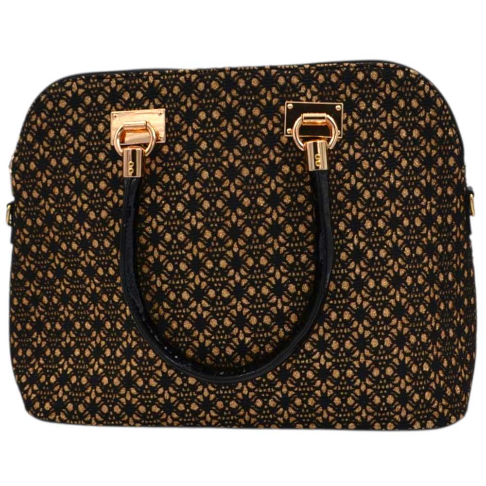 Borsa Bauletto donna firmata Sara Moda rigida rivestita in lanetta lurex nera e bronzo manico lucido accessorio oro