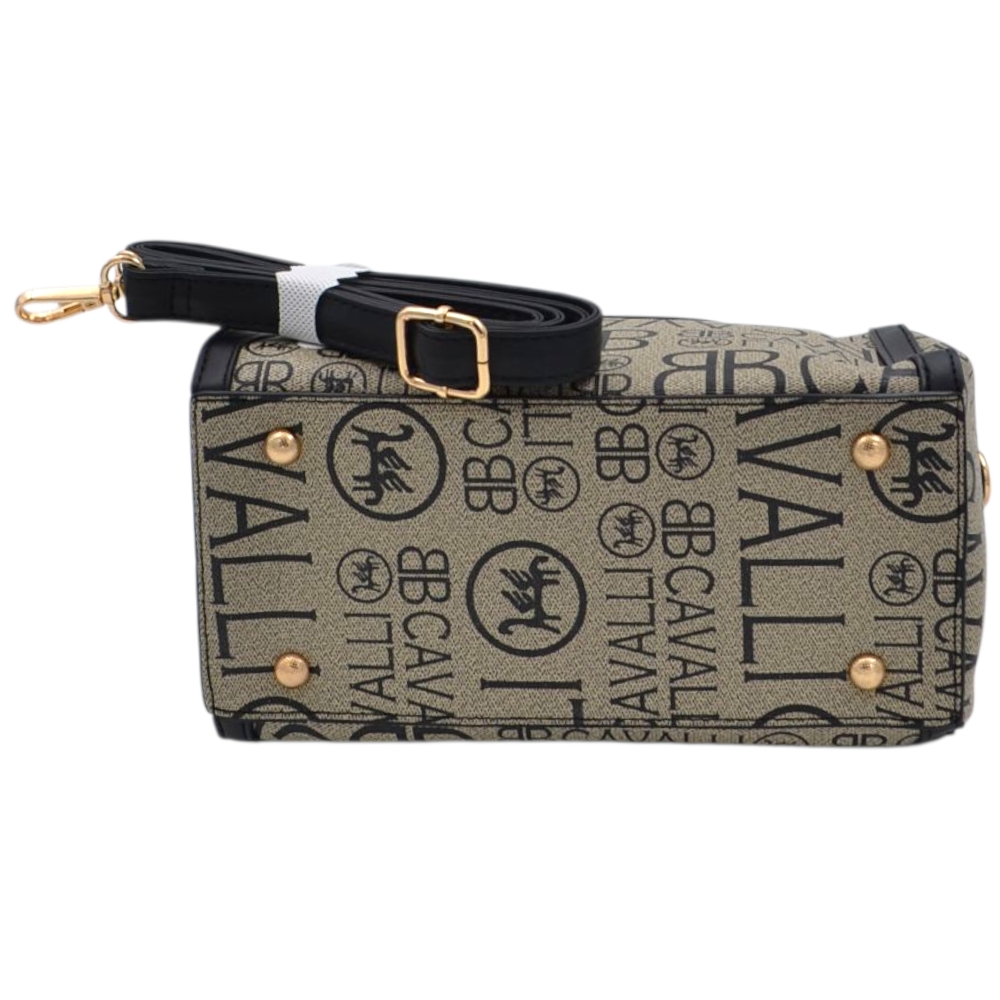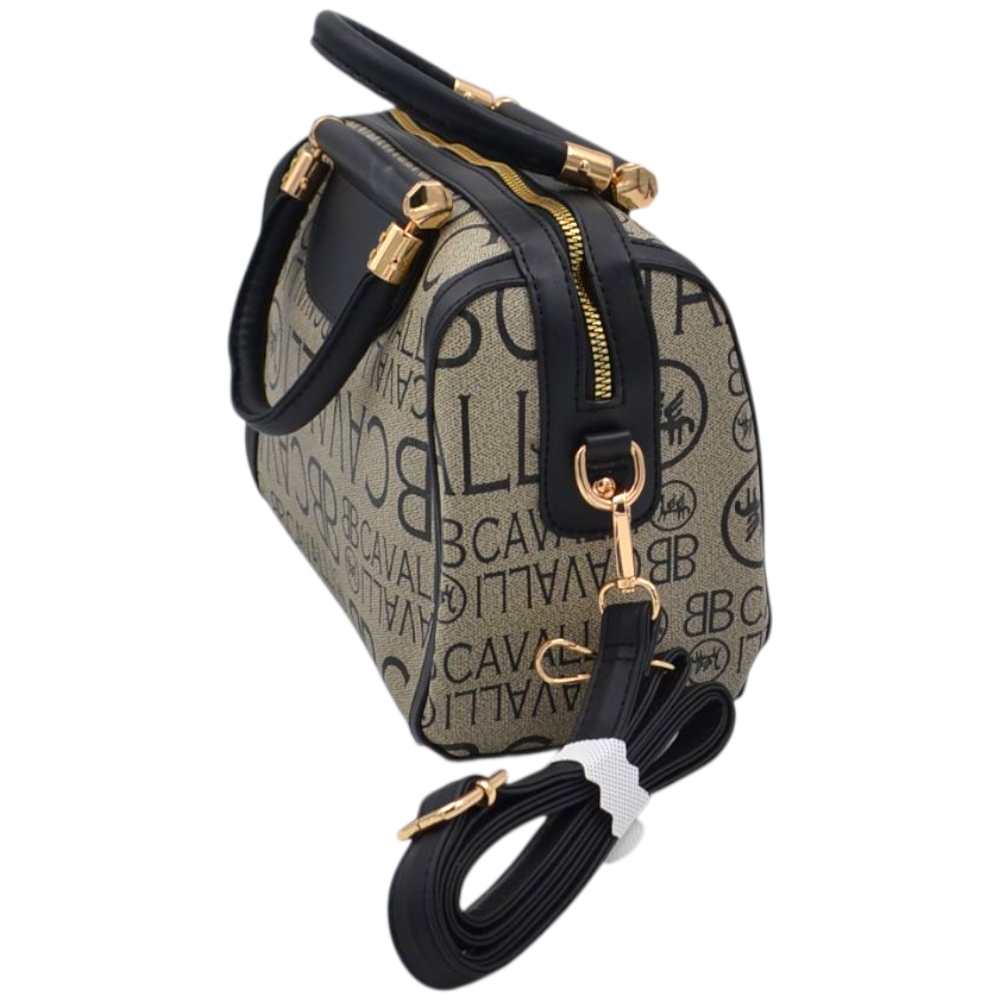 Elegante e raffinata, questa borsa donna a mano modello bauletto è caratterizzata dall’iconico logo Cavalli ripetuto su tutta la superficie, che dona un look moderno e riconoscibile. Il colore beige e nero con stampa a contrasto la rende versatile e facile da abbinare a qualsiasi outfit, dal casual chic al più elegante.