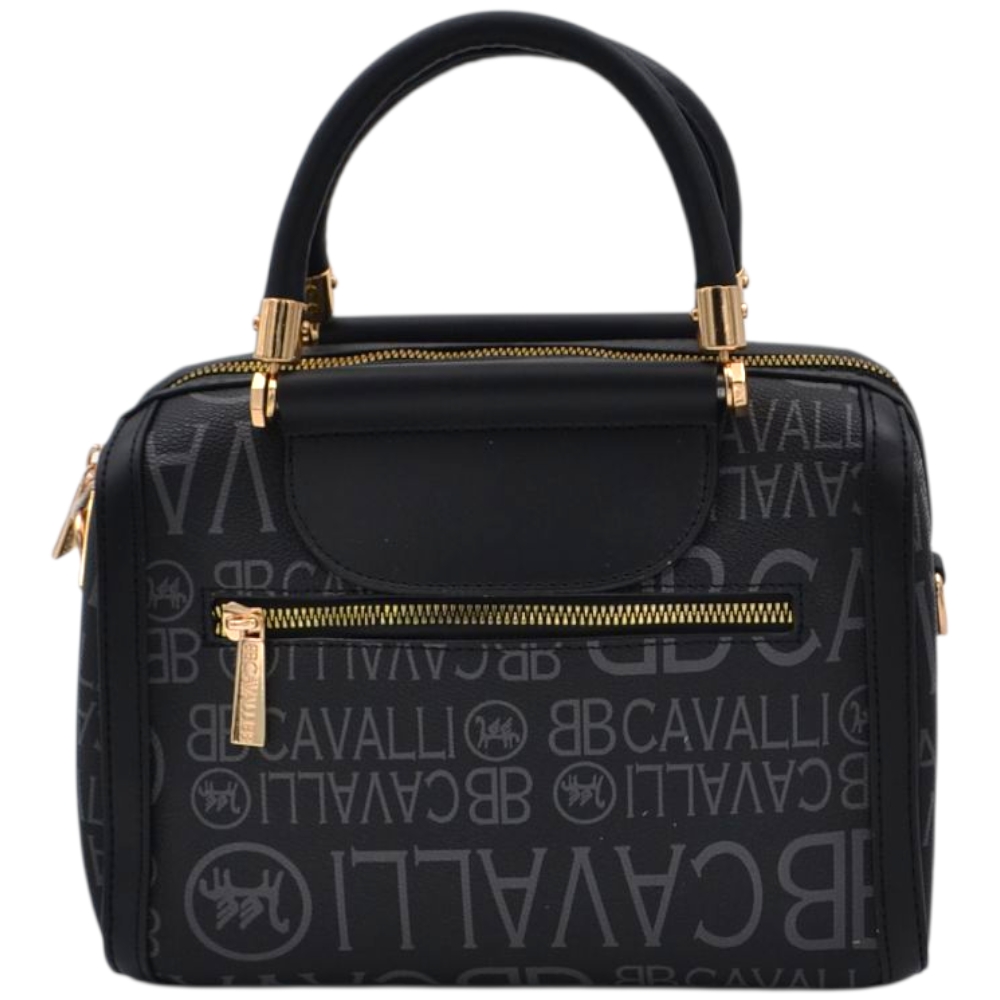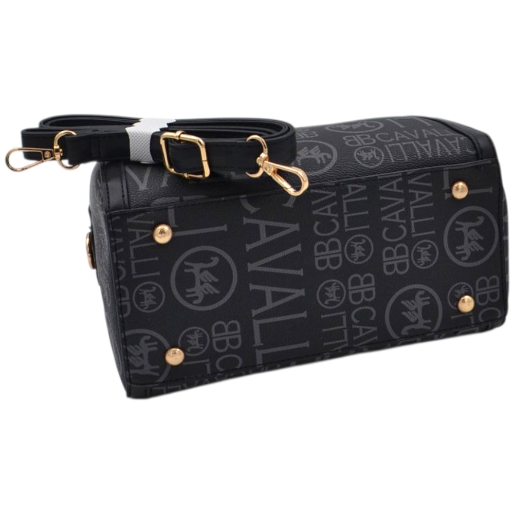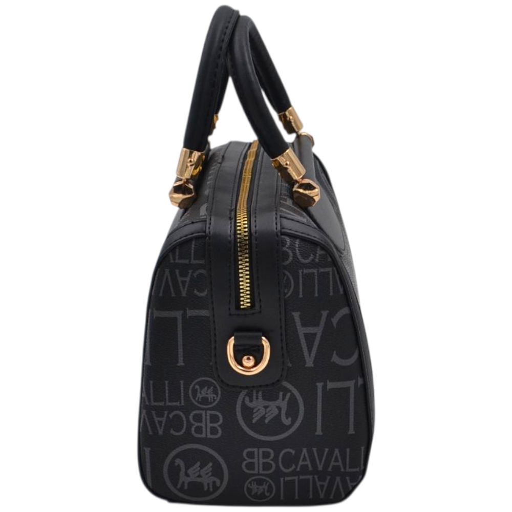 Borsa Donna a Mano Bauletto nero Logo Cavalli Materiale Sintetico Rigido Manici Strutturati Dettagli Oro