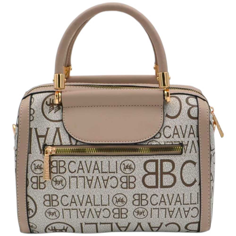Elegante e raffinata, questa borsa donna a mano modello bauletto è caratterizzata dall’iconico logo Cavalli ripetuto su tutta la superficie, che dona un look moderno e riconoscibile. Il colore beige e nero con stampa a contrasto la rende versatile e facile da abbinare a qualsiasi outfit, dal casual chic al più elegante.