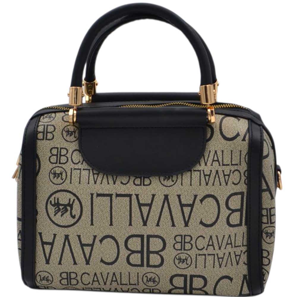 Elegante e raffinata, questa borsa donna a mano modello bauletto è caratterizzata dall’iconico logo Cavalli ripetuto su tutta la superficie, che dona un look moderno e riconoscibile. Il colore beige e nero con stampa a contrasto la rende versatile e facile da abbinare a qualsiasi outfit, dal casual chic al più elegante.