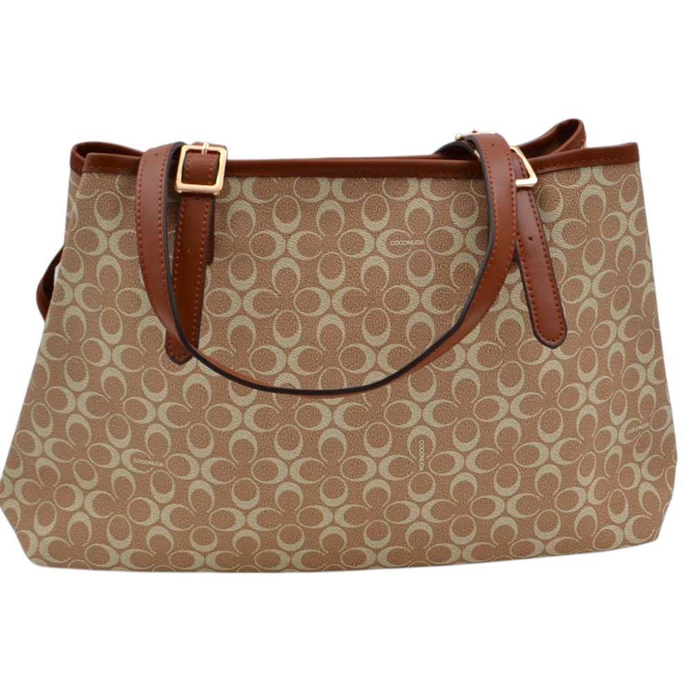 Borsa firmata Coconuda con manici regolabili tracolla e borsello fantasia monogramma beige e bianca zip dorata