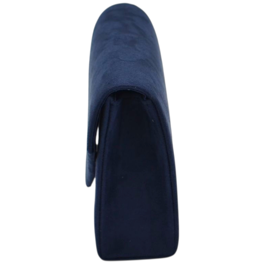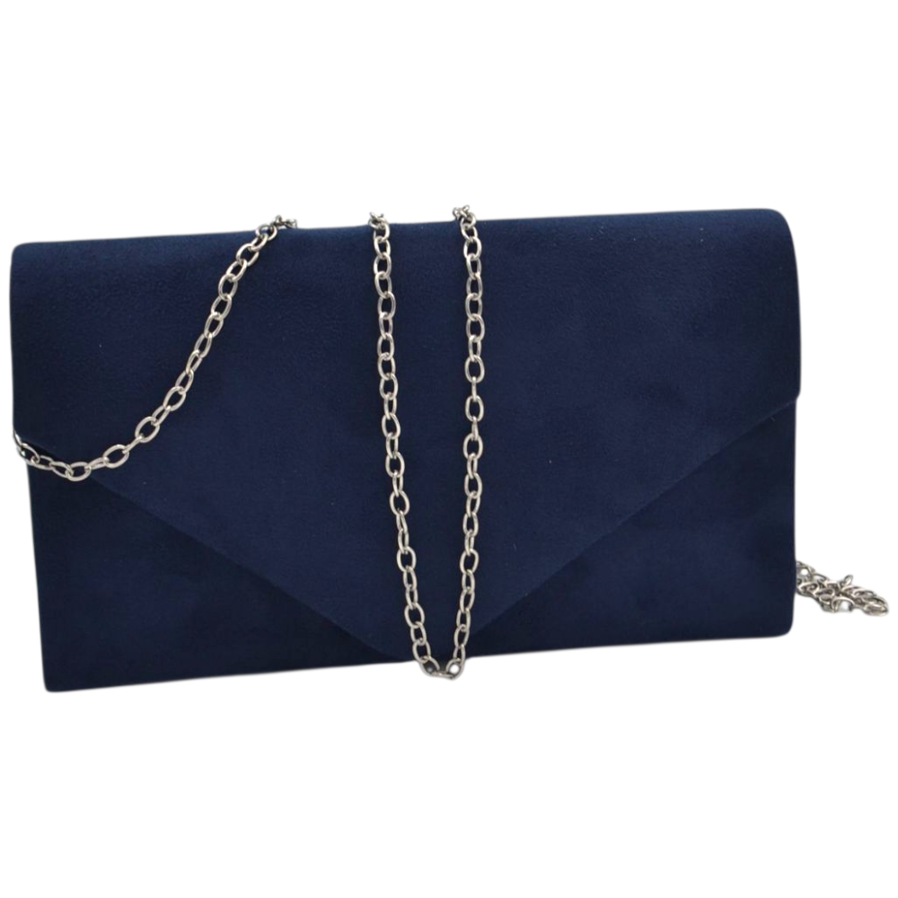 Pochette donna rettangolare a forma portafoglio in camoscio blu catena linea basic made in italy