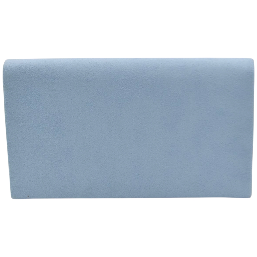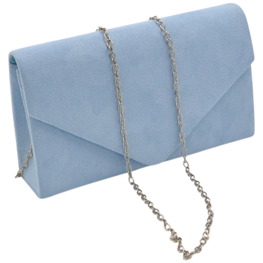 Pochette donna rettangolare a forma portafoglio in camoscio celeste catena linea basic made in italy