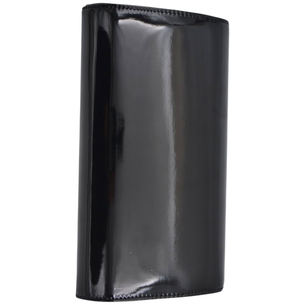 Pochette donna rettangolare a forma di lettera busta in vernice nera lucida catena linea basic made in italy