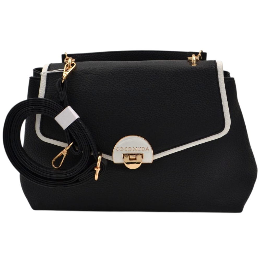 Borsa a tracolla donna firmata Coconuda a lettera nera e bianca con chiusura gancio e zip
