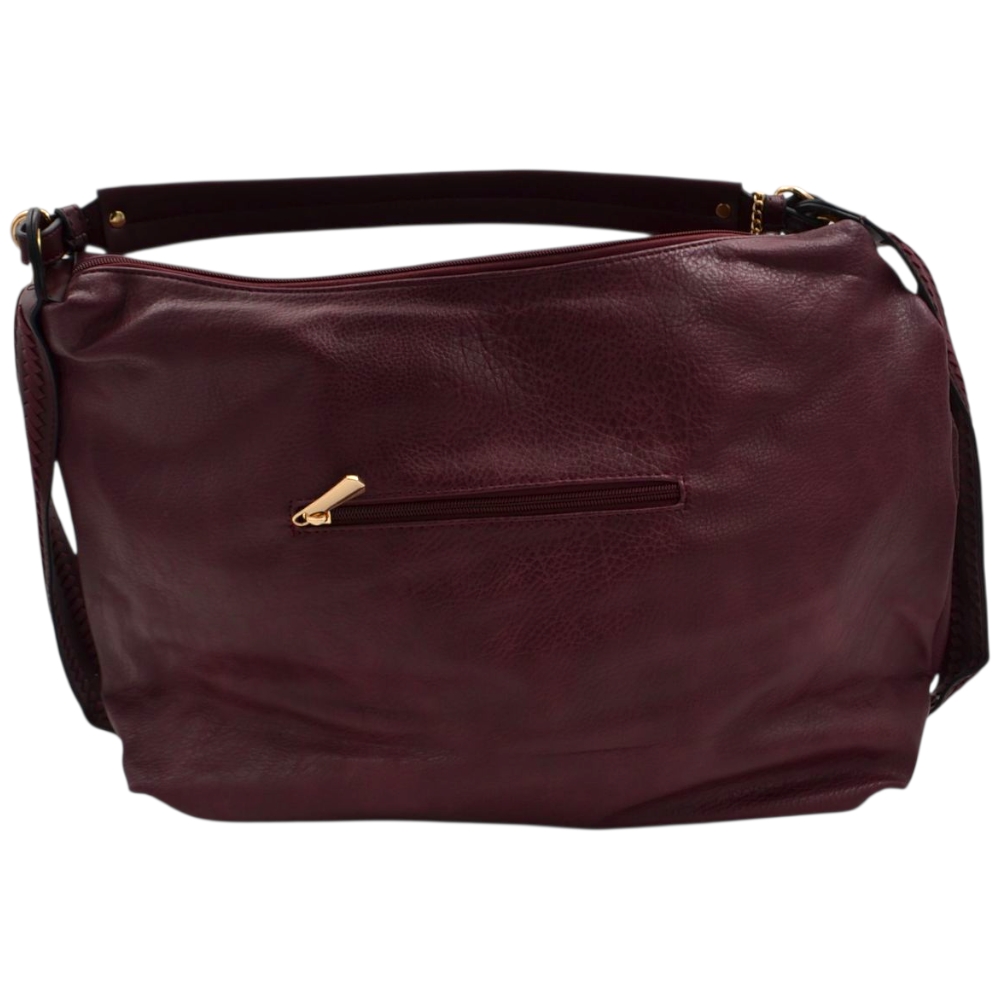 Borsa morbida donna firmata charro bordeaux a spalla bauletto con accessorio frangia e zip dorate.
