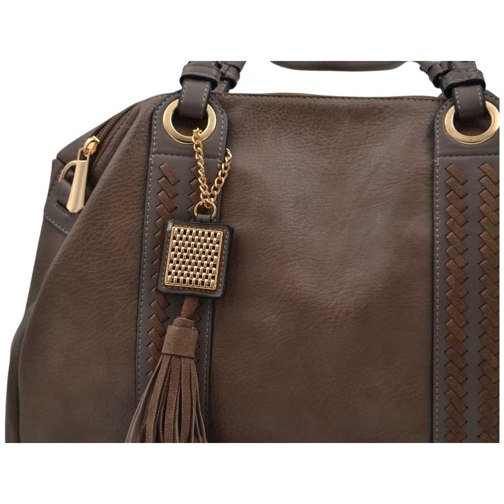Borsa morbida donna firmata charro marrone a spalla bauletto con accessorio frangia e zip dorate