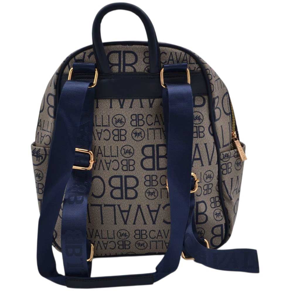 Zaino donna firmato Cavalli neutro con multilogo blu cerniere dorate varie tasche