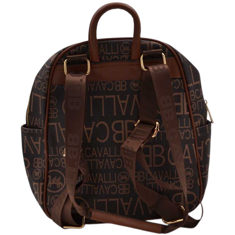 Zaino donna firmato Cavalli marrone con multilogo cuoio cerniere dorate varie tasche