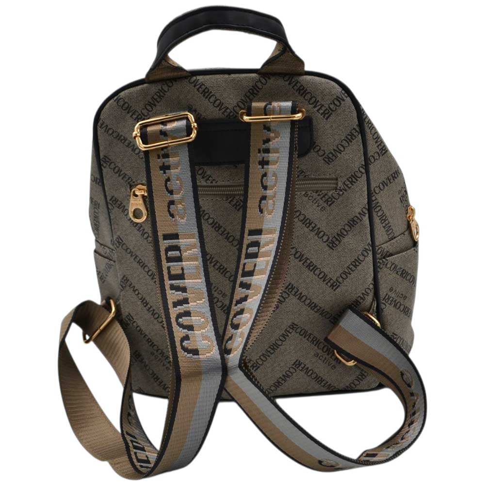 Zaino donna firmato Coveri nero grigio con fantasia monogramma cerniere dorate bretelle tracolla loggate.