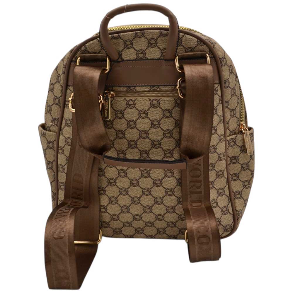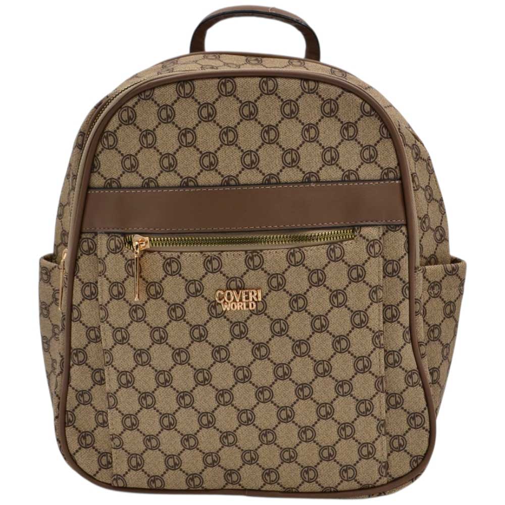 Zaino donna firmato coveri beige tortora con fantasia monogramma cerniere dorate bretelle tracolla loggate