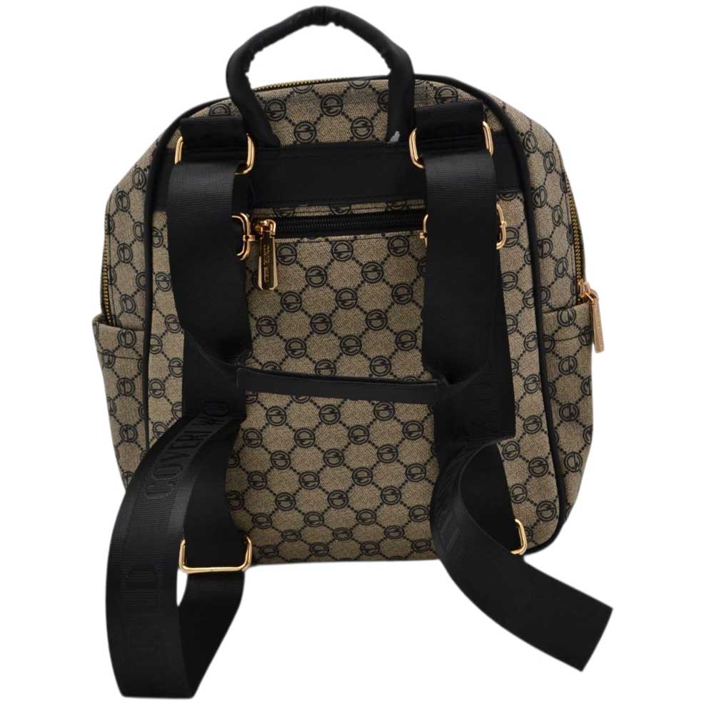 Zaino donna firmato Coveri nero grigio con fantasia monogramma cerniere dorate bretelle tracolla loggate.