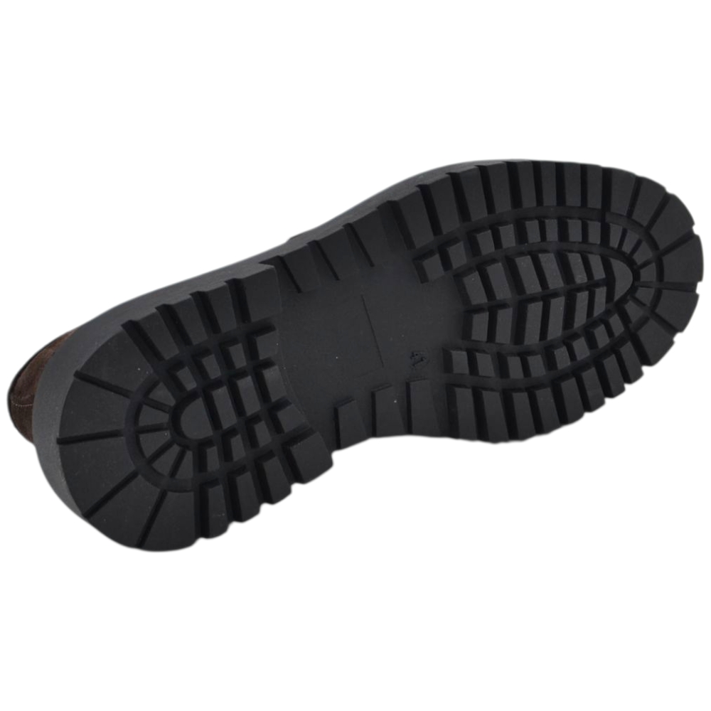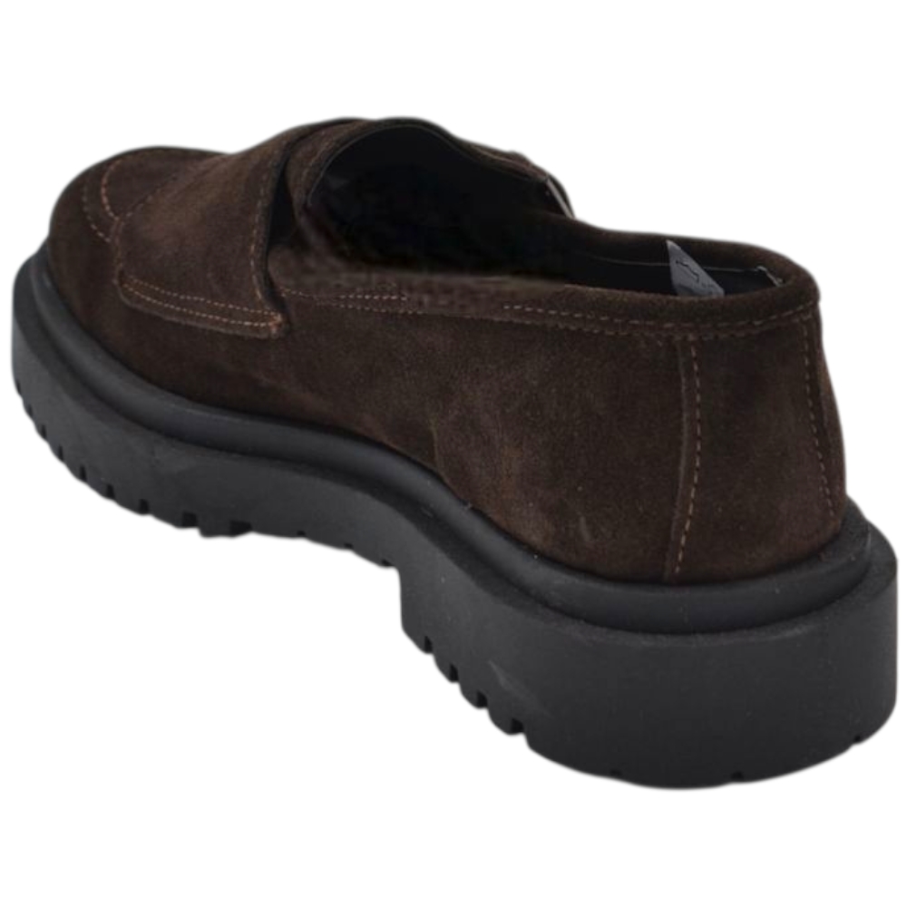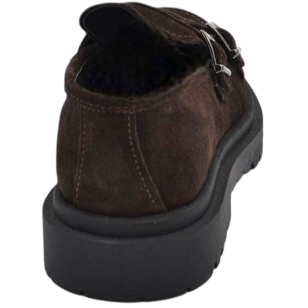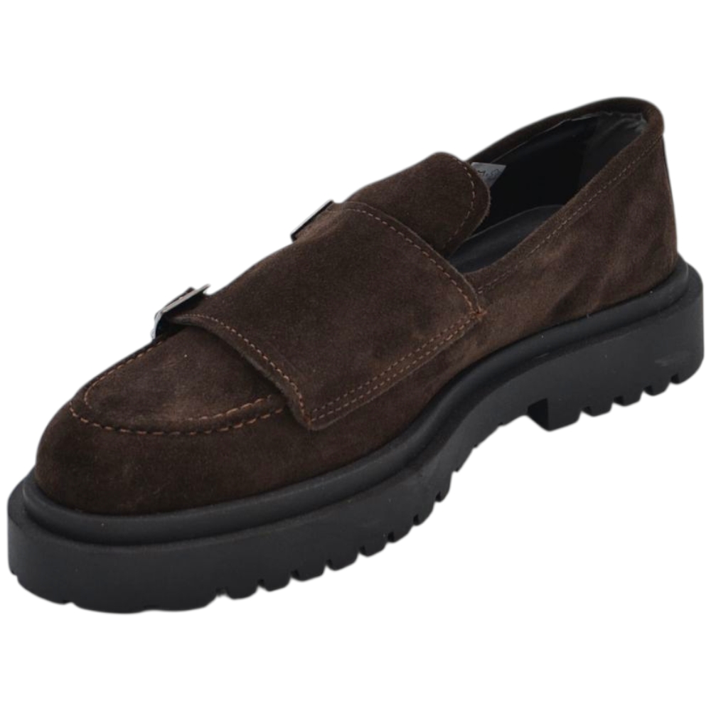 Scarpe uomo mocassino fibbia doppia marrone in vera pelle scamosciata business fondo gomma zigrinato alto 3 cm