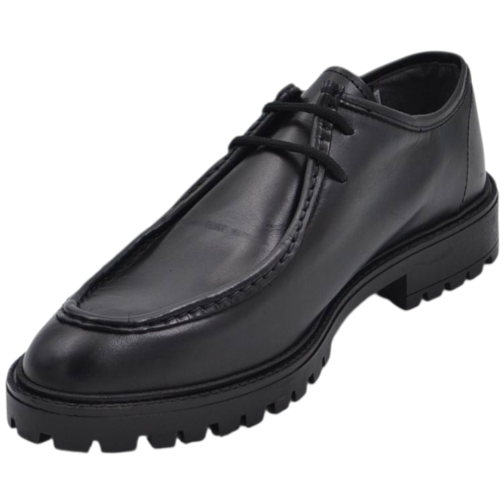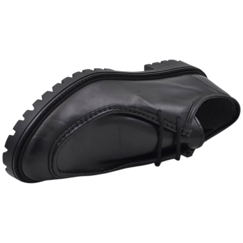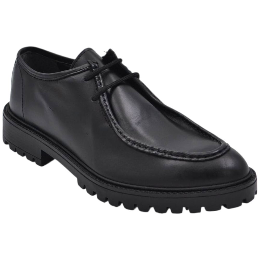 Scarpe uomo stringate ingegniere vera pelle nappa nero spazzolato suola alta zigrinata made in italy