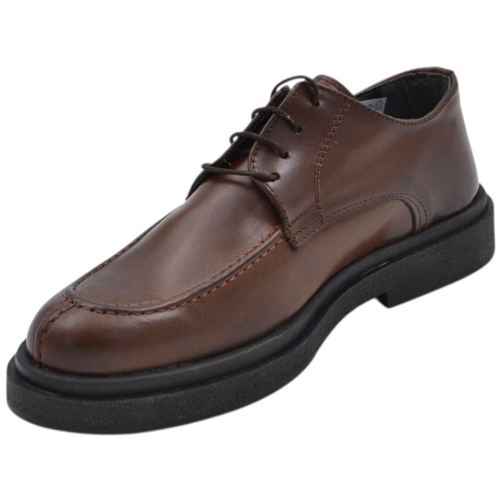 Scarpe uomo stringate ingegniere vera pelle cuoio spazzolato suola alta liscia made in italy