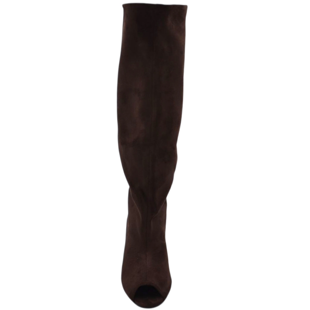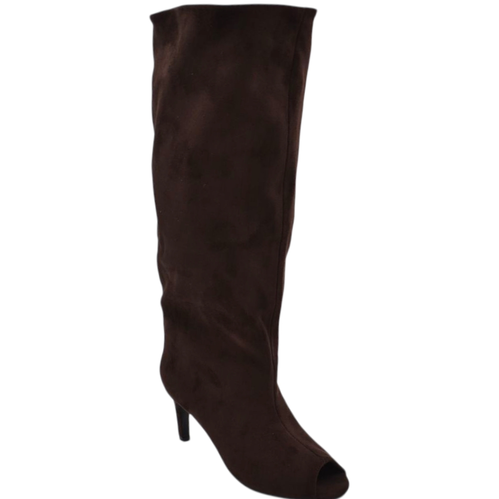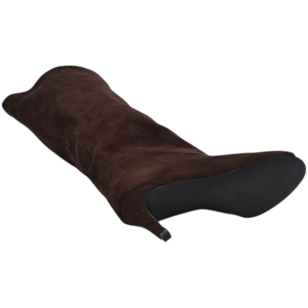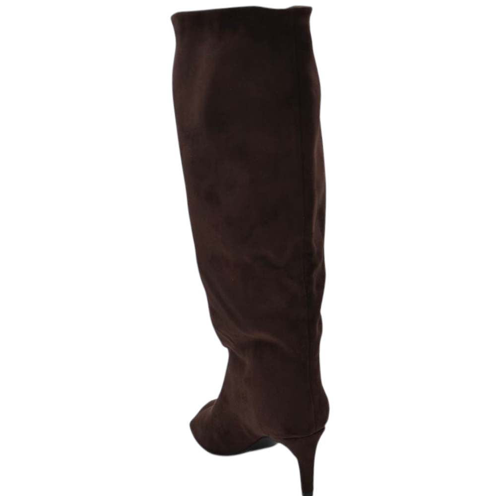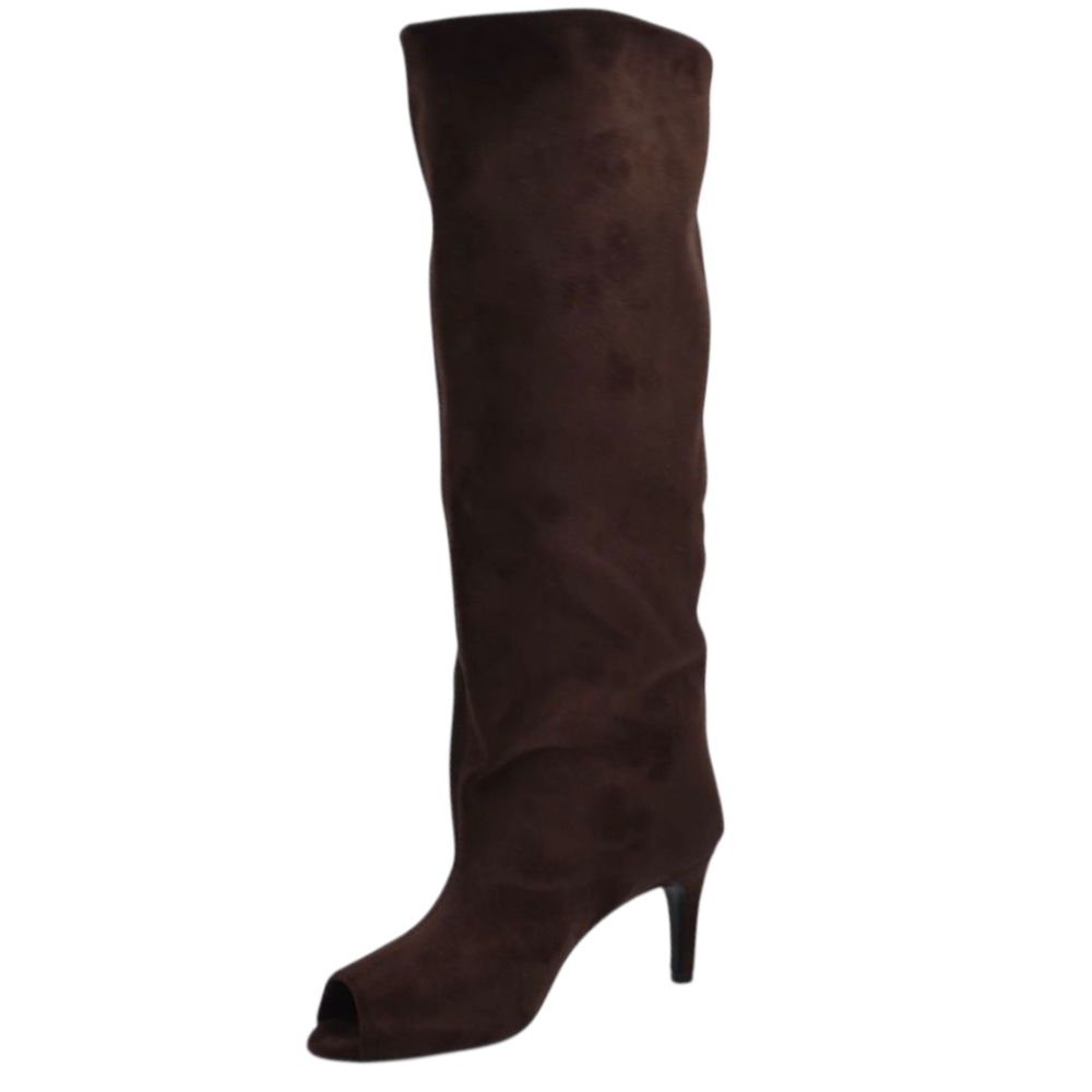 Stivali Slouchy donna Arricciato in Camoscio Marrone Spuntato open tee con Tacco Spillo 5 cm e Gambale Over