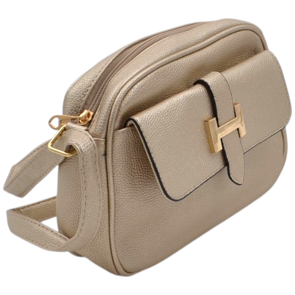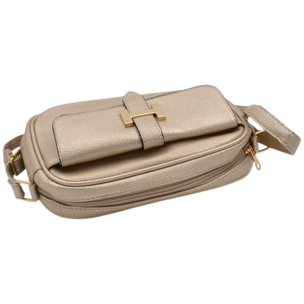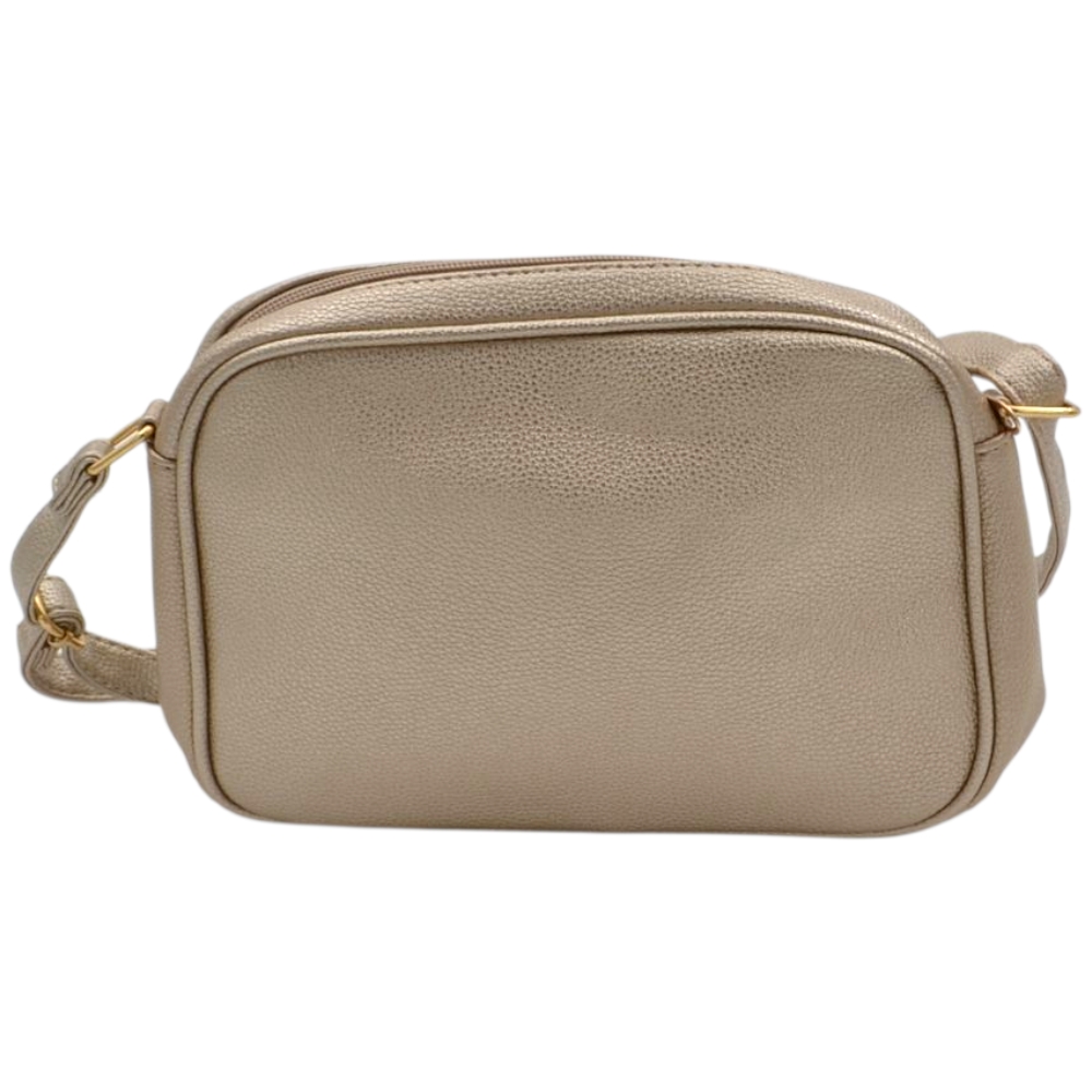 Borsa a tracolla regolabile donna small in ecopelle oro con zip e tasca frontale
