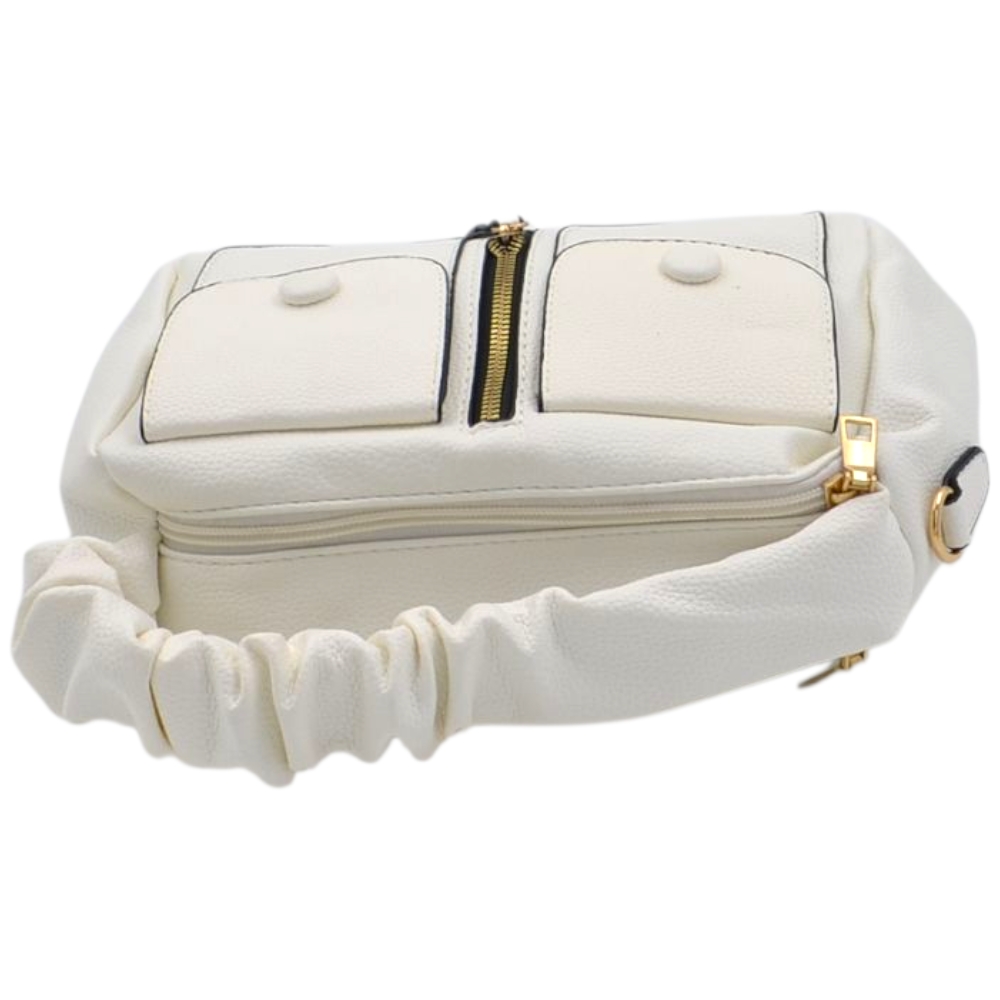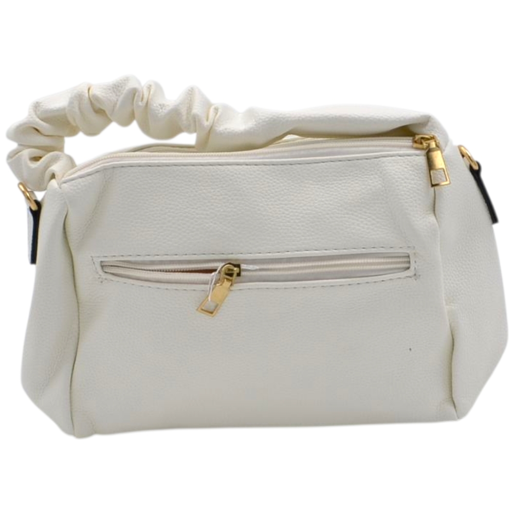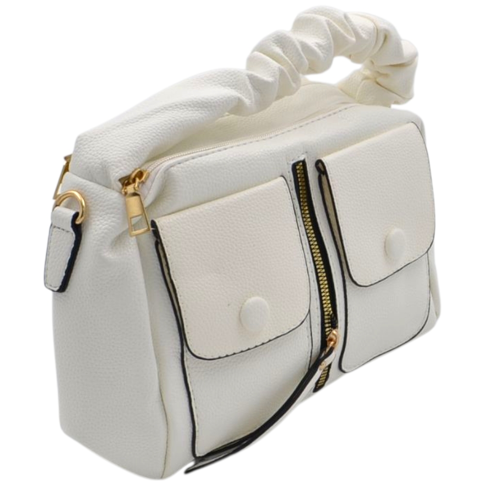 Borsa a mano donna small in pelle bianco con zip tasche frontali e manico arricciato