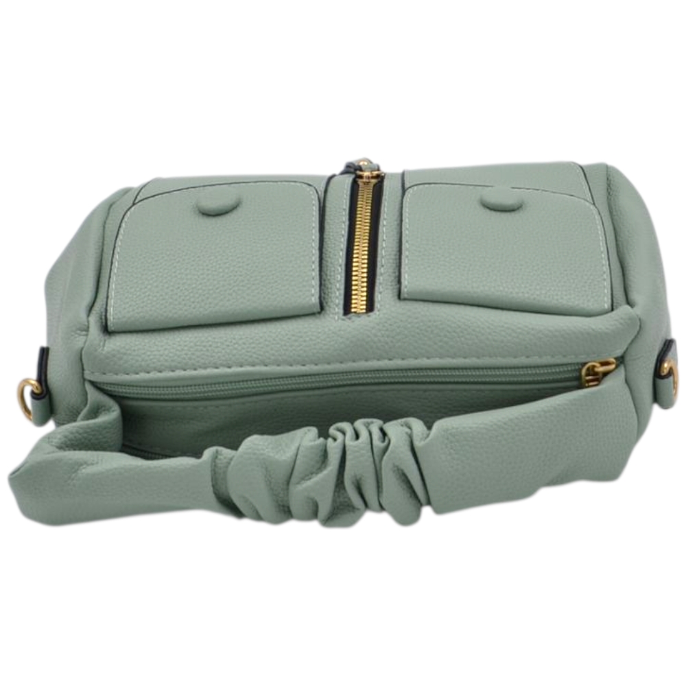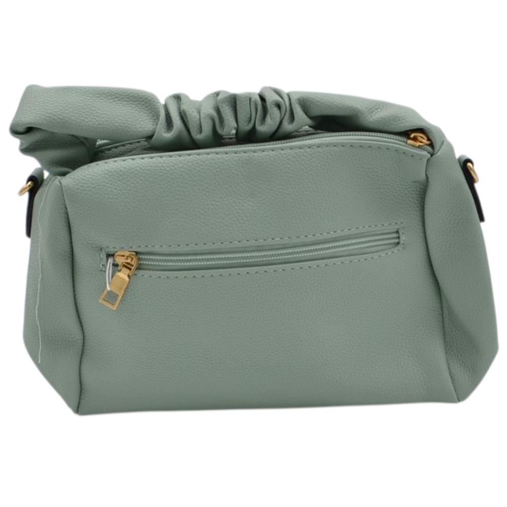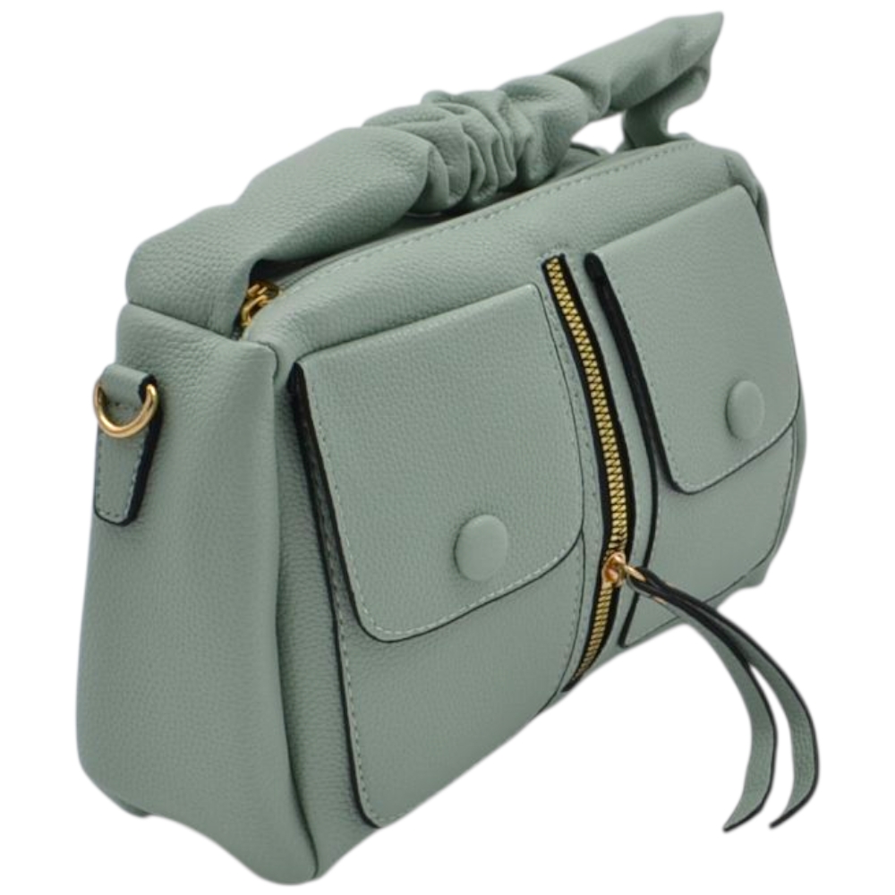 Borsa a mano donna small in pelle verde acqua con zip tasche frontali e manico arricciato