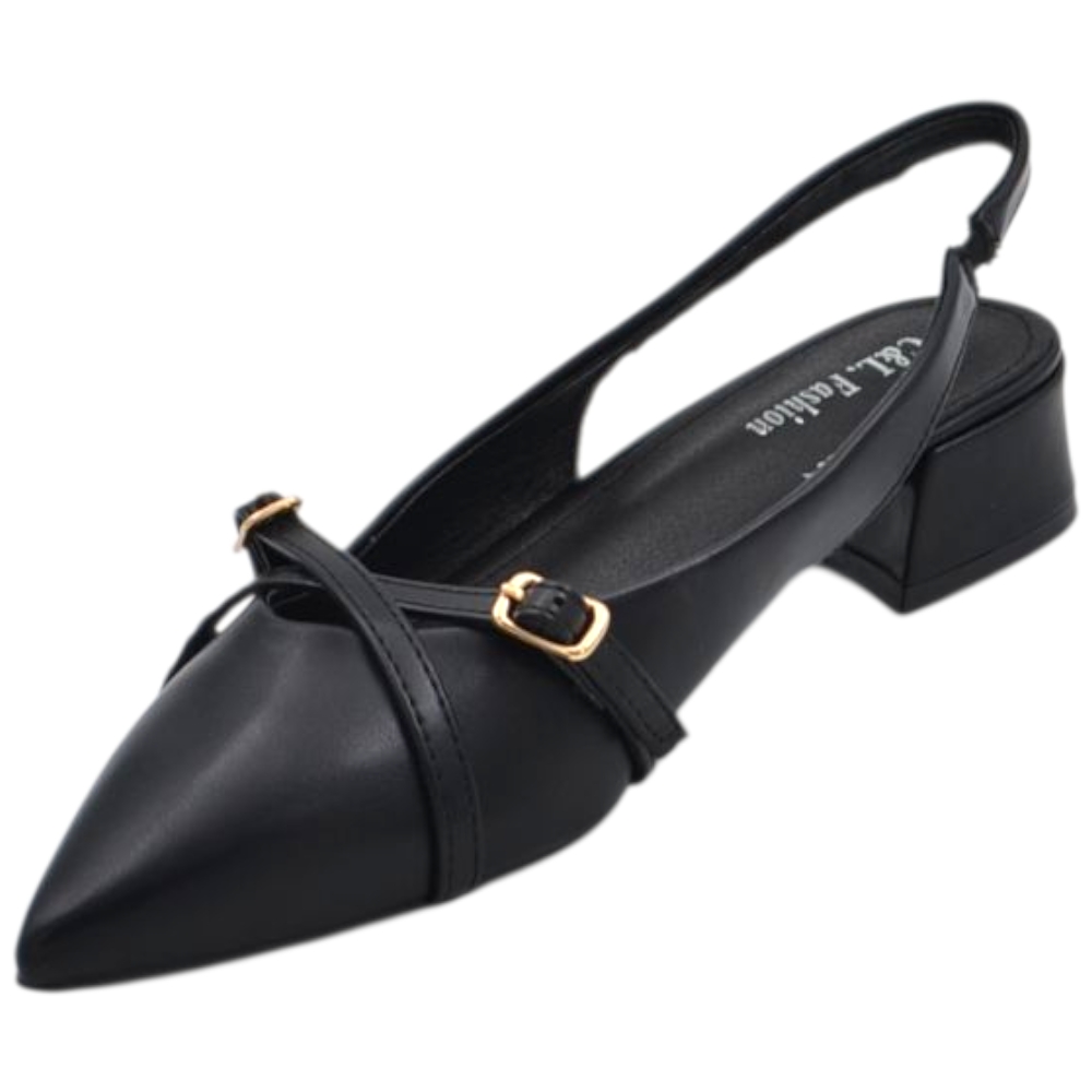 Il modello è dotato di *cinturino regolabile con fibbia metallica, che assicura una calzata stabile e personalizzabile. La **punta affusolata* valorizza la forma del piede, rendendo la scarpa adatta sia a occasioni formali sia a utilizzi quotidiani più curati.