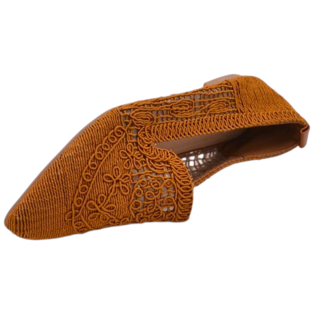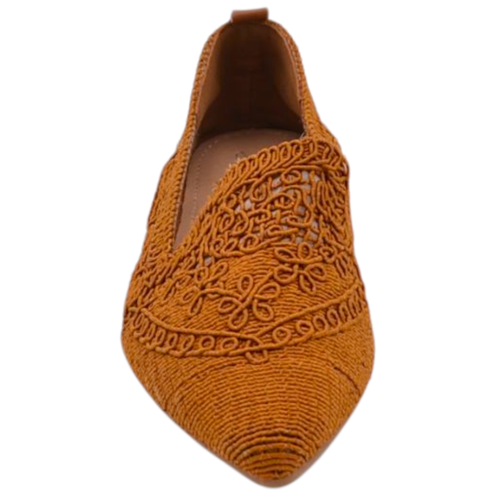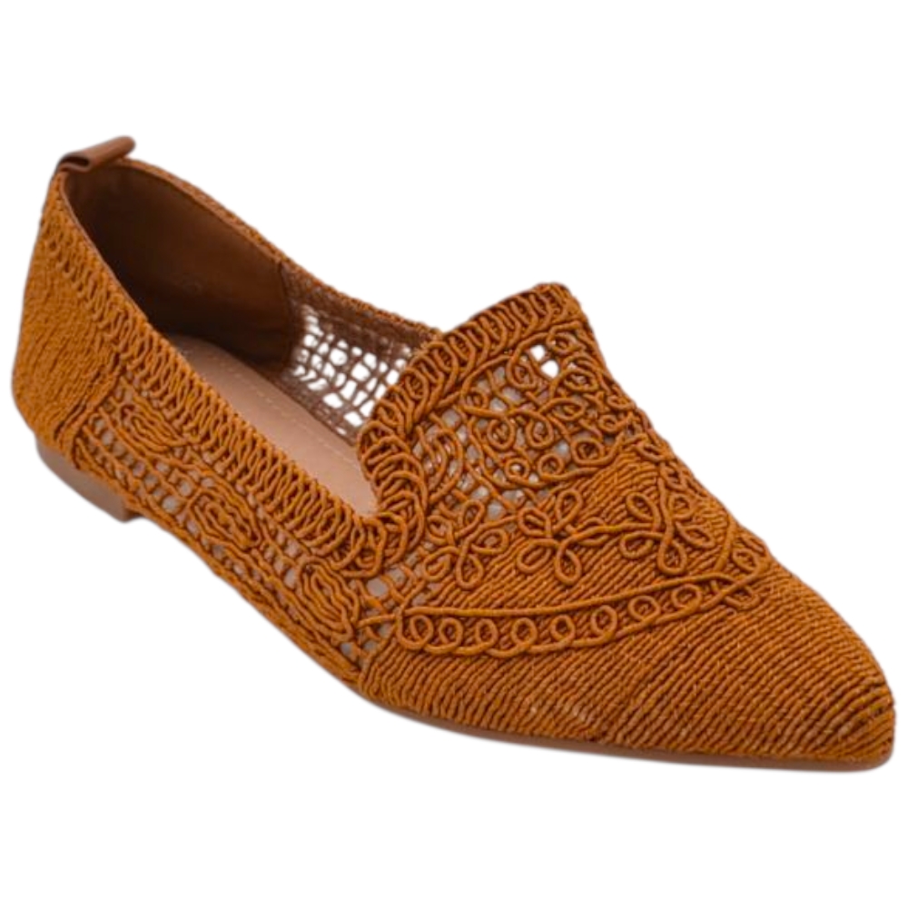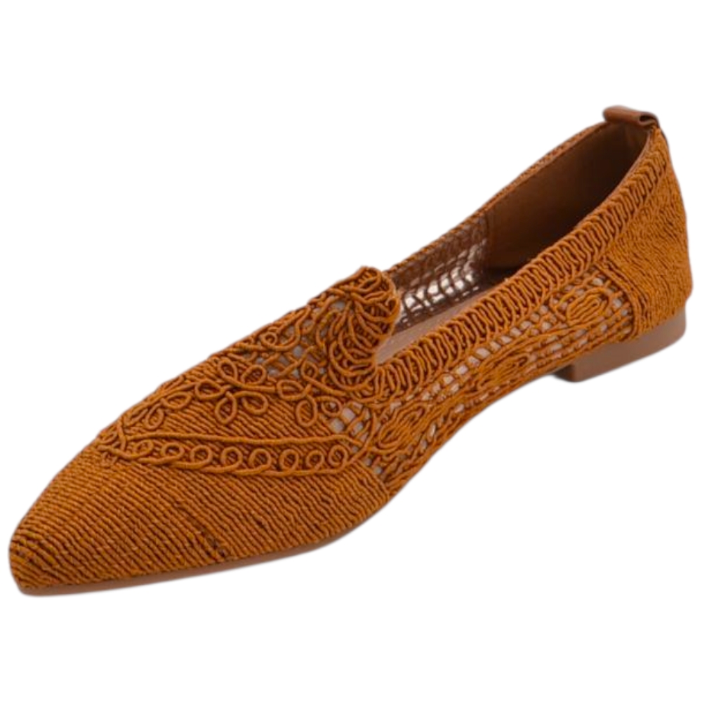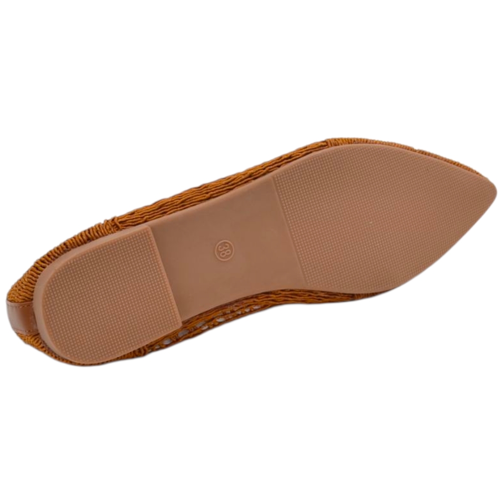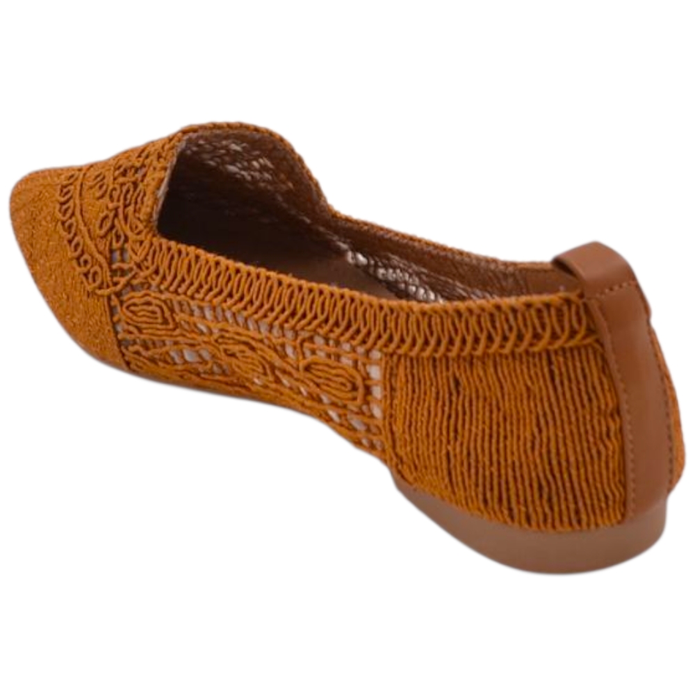 Ballerina donna cuoio in tessuto lavorato a maglia con punta affusolata e suola in gomma tacco piatto