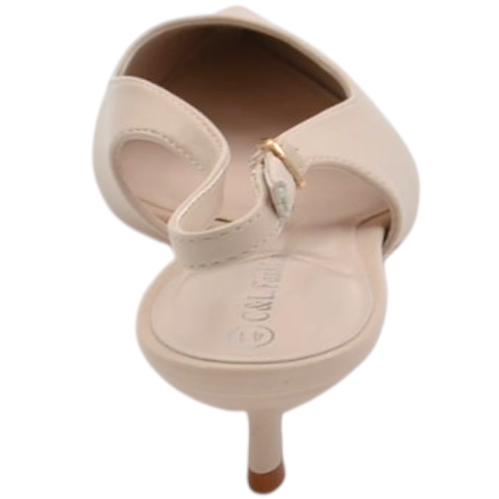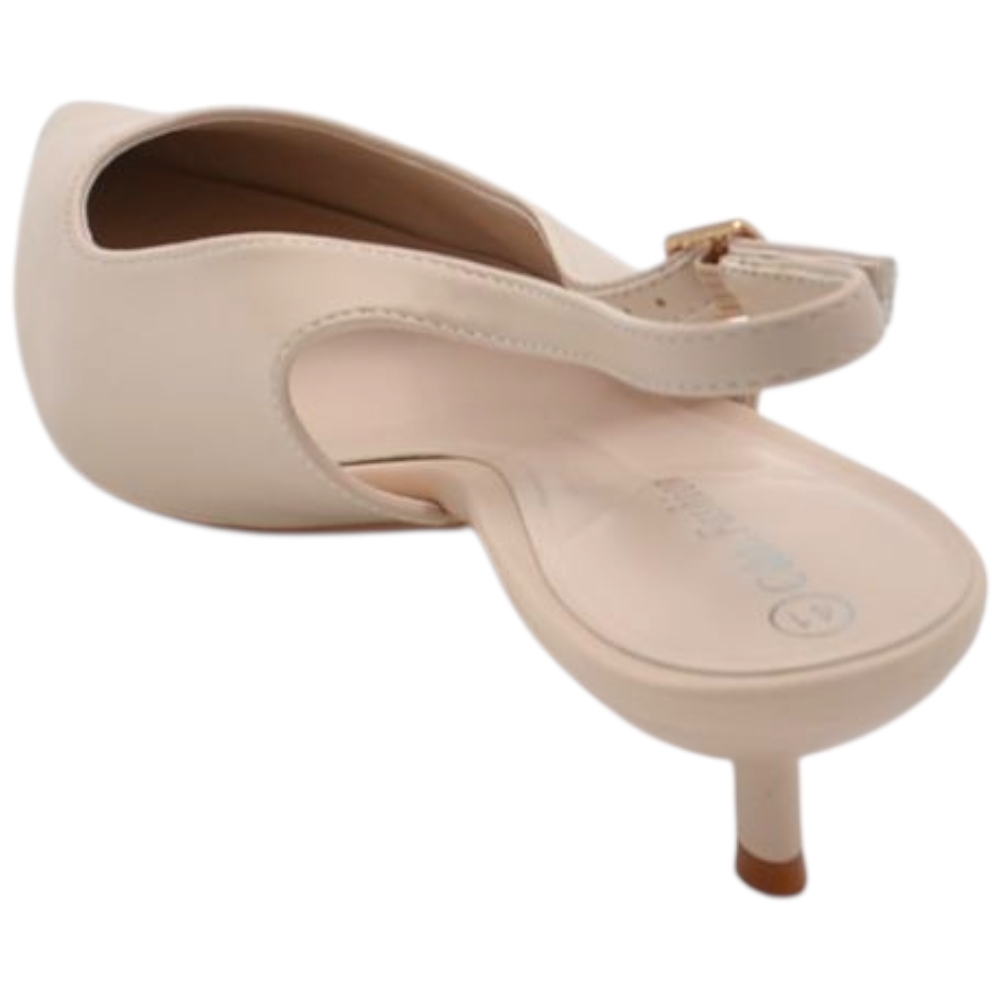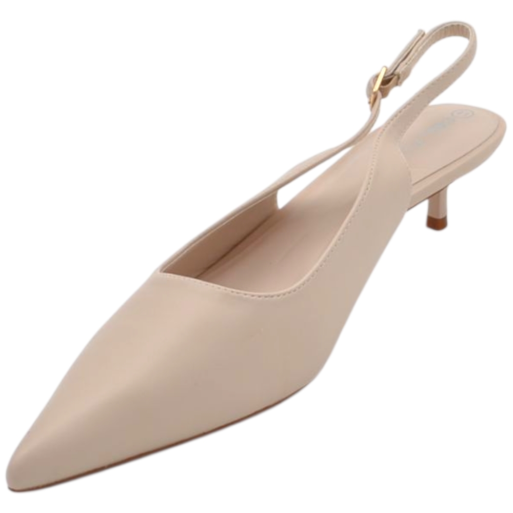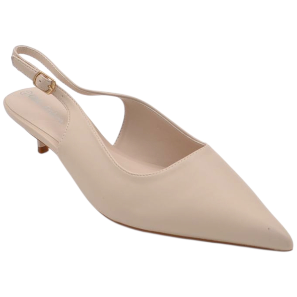 Decollete donna a punta beige pelle slingback con cinturino tacco a spillo 3 cm