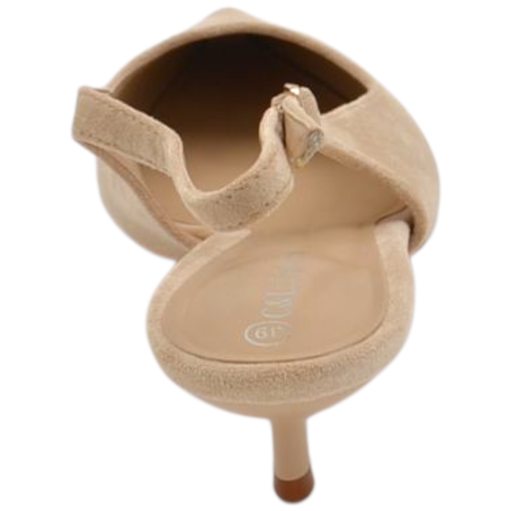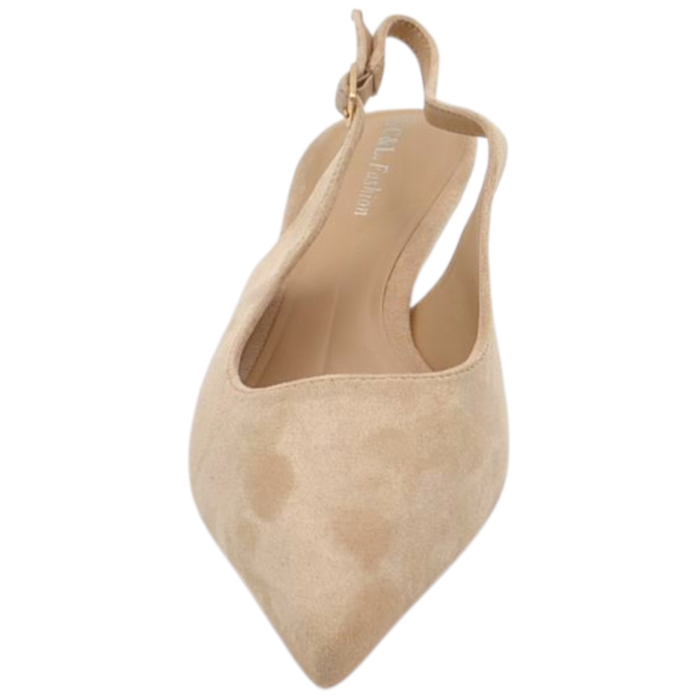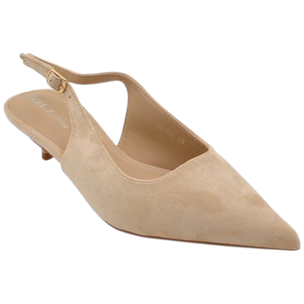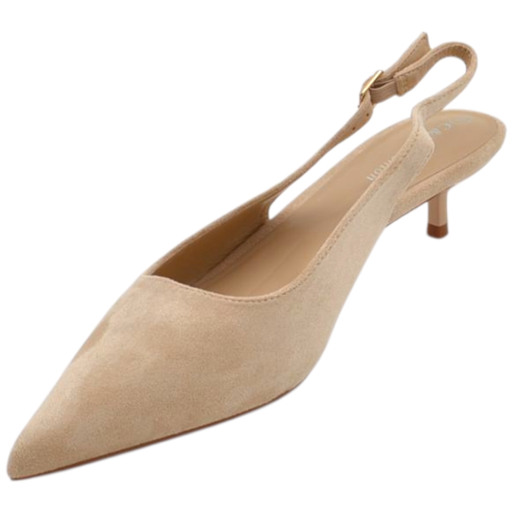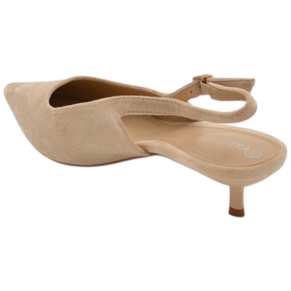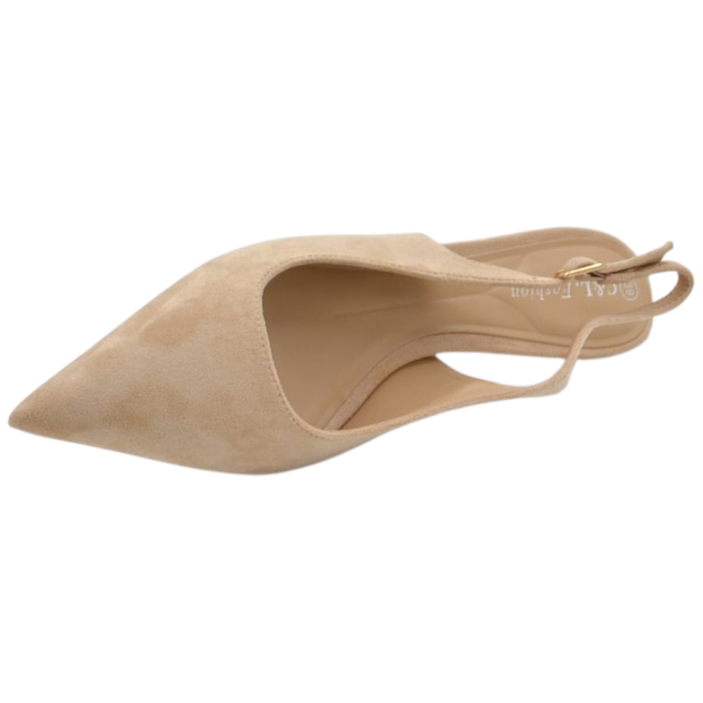 Decollete donna a punta beige camoscio slingback con cinturino tacco a spillo 3 cm