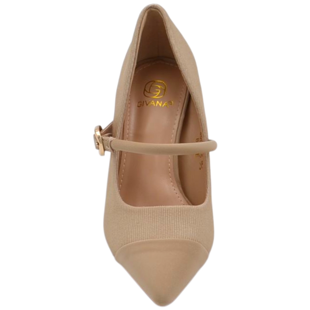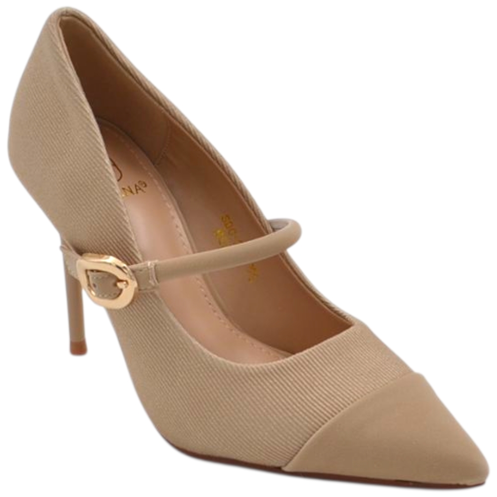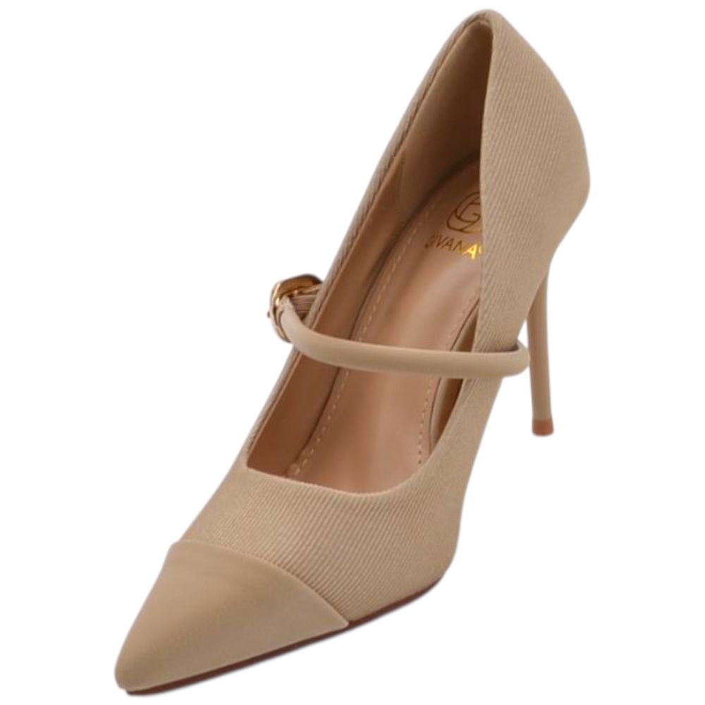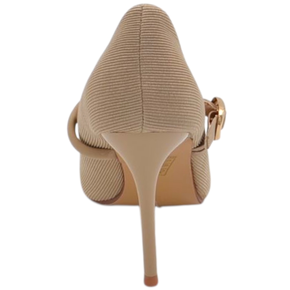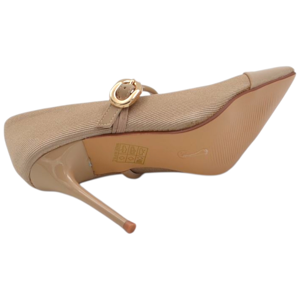 Decollete donna beige nude in tessuto con cinturino e fibbia dorata tacco a spillo 12 cm