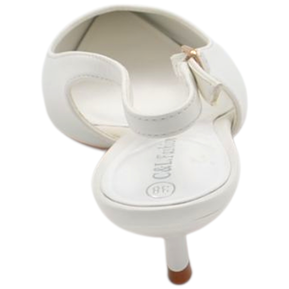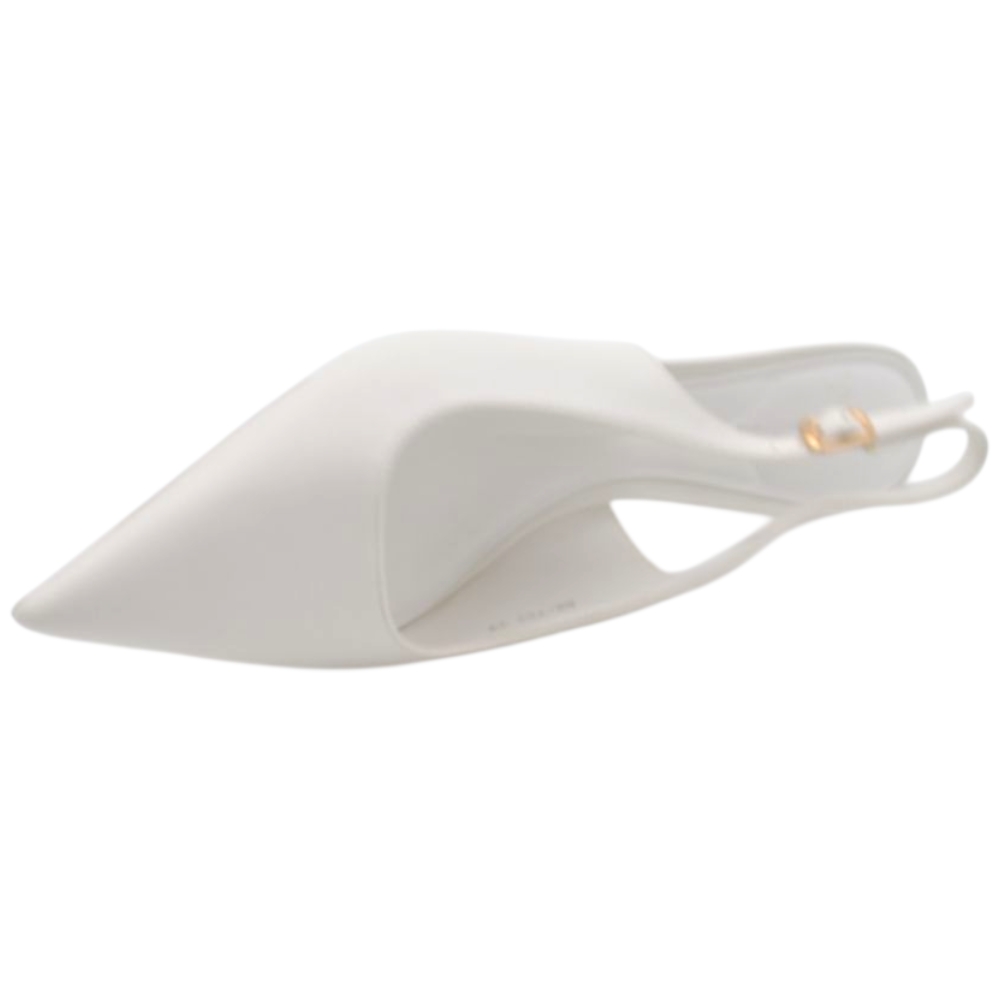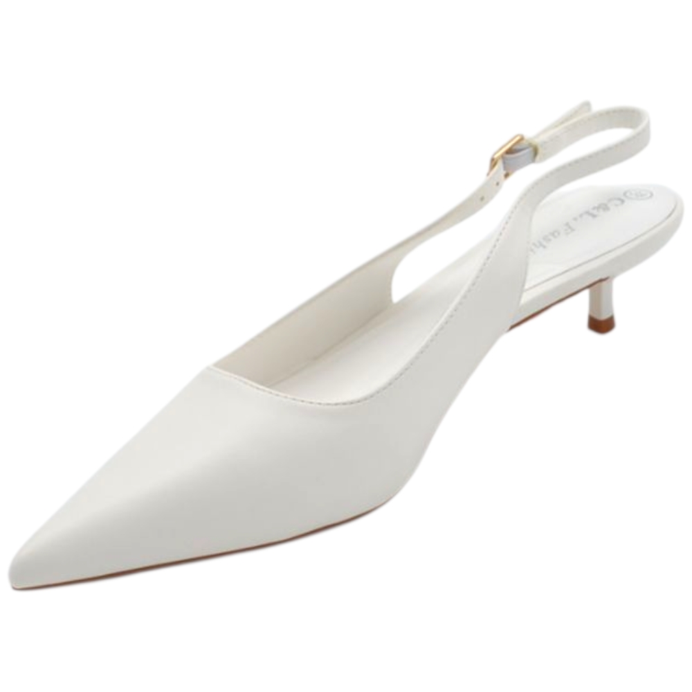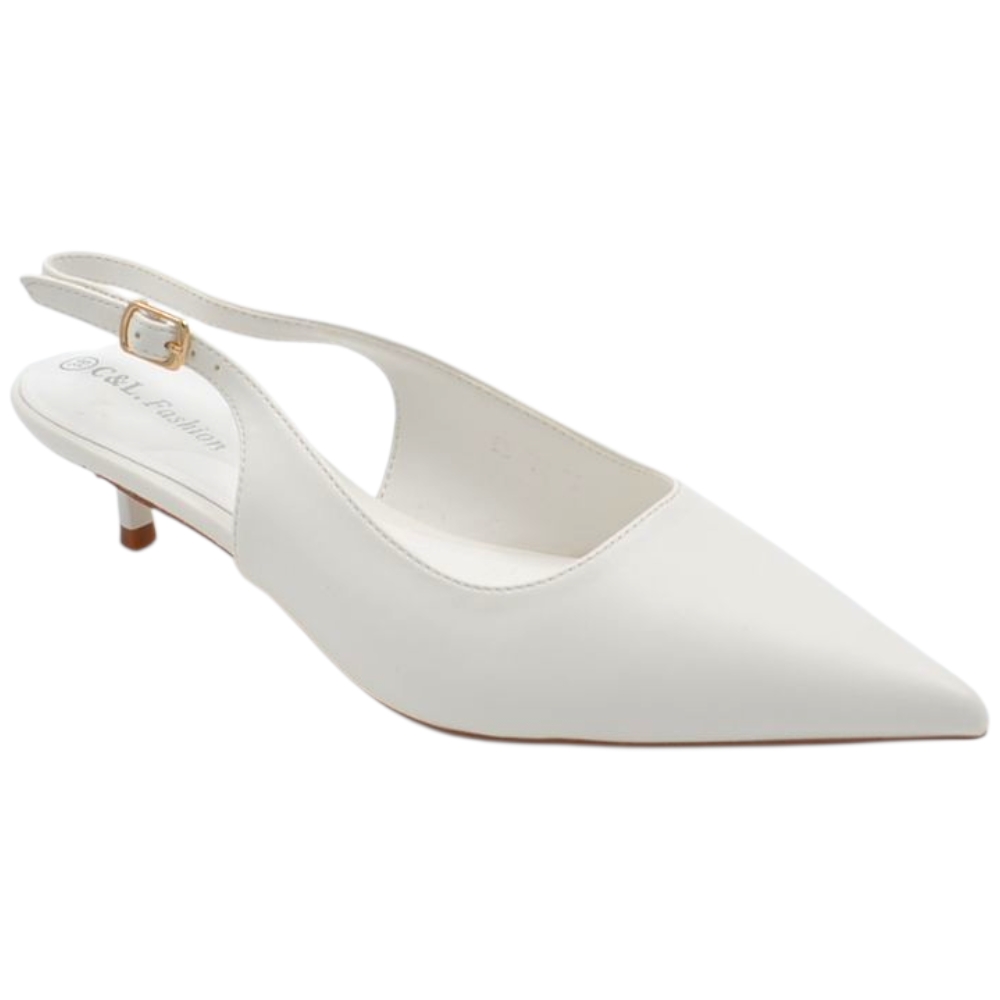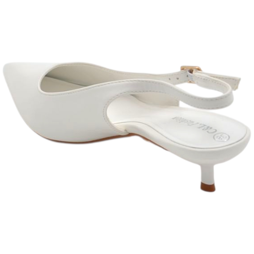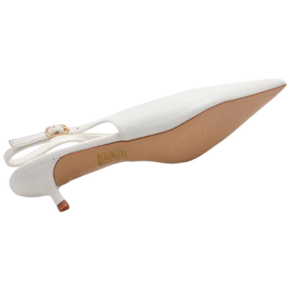 Decollete donna a punta bianco pelle slingback con cinturino tacco a spillo 3 cm