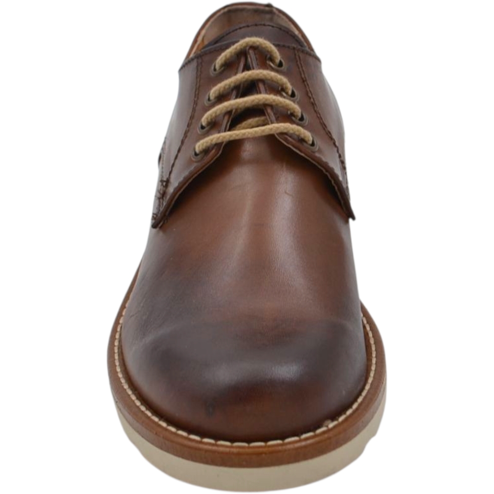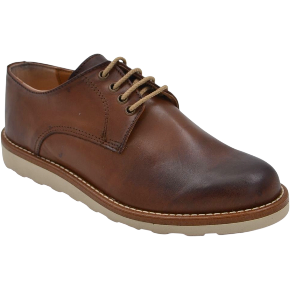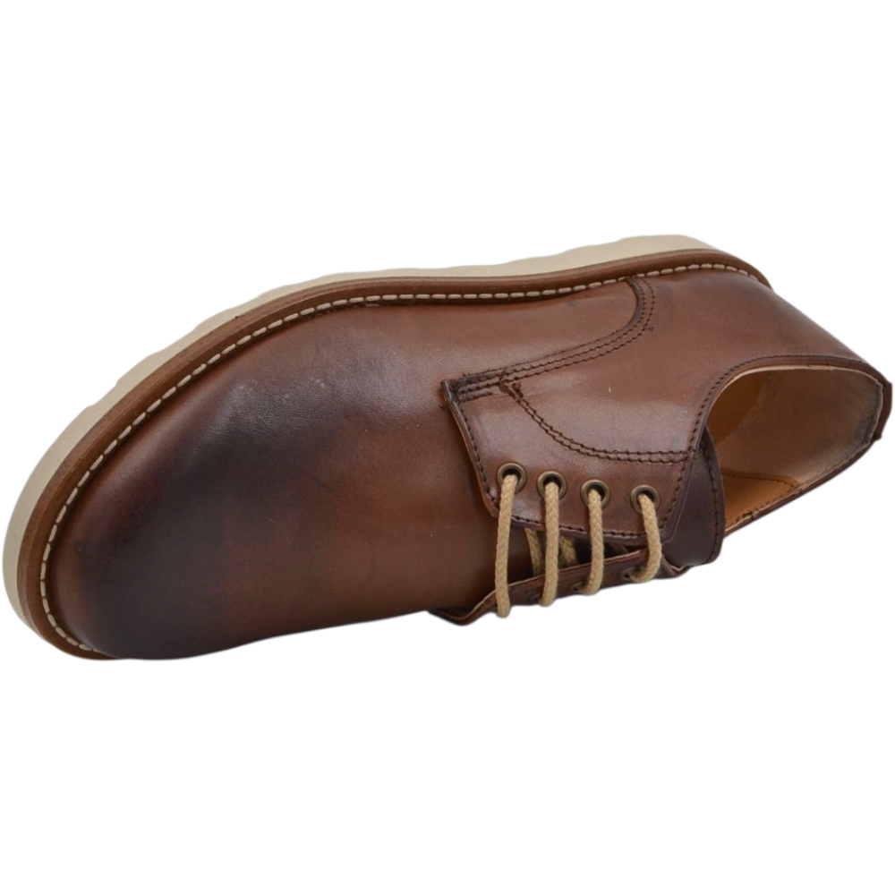 Scarpa uomo stringata in pelle cuoio spazzolato cucitura in punta fondo gomma zigrinato alto handmade