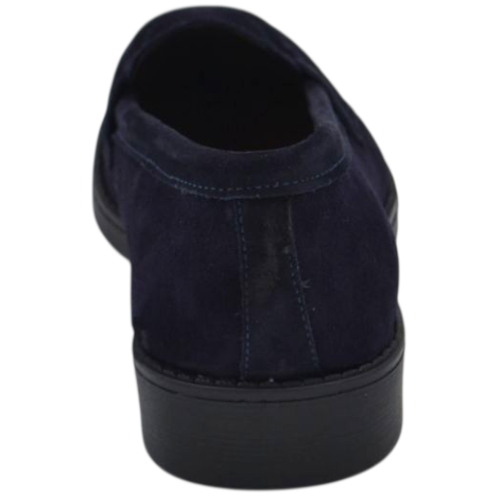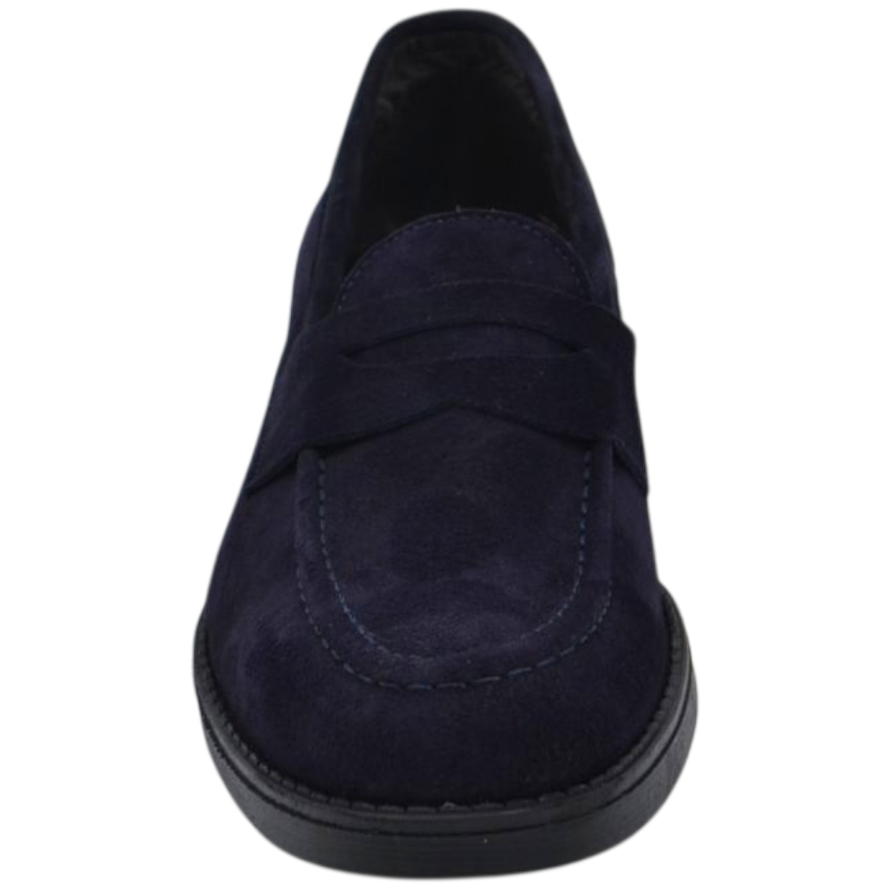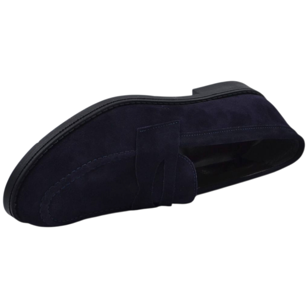 Scarpe uomo mocassino con bendina blu in vera pelle scamosciata business fondo gomma liscio alto 2 cm