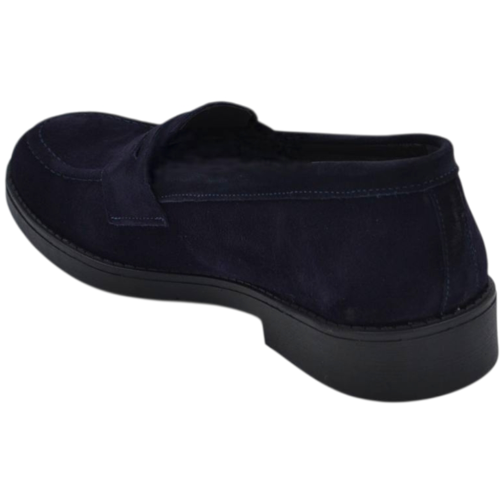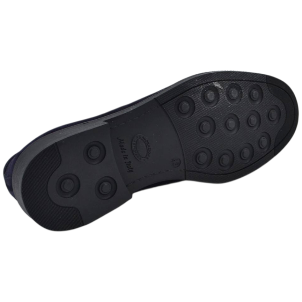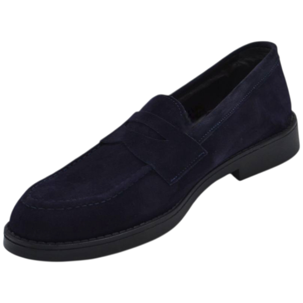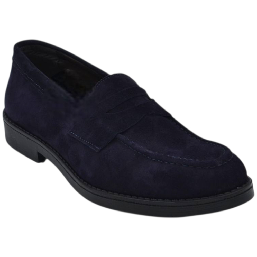 Scarpe uomo mocassino con bendina blu in vera pelle scamosciata business fondo gomma liscio alto 2 cm