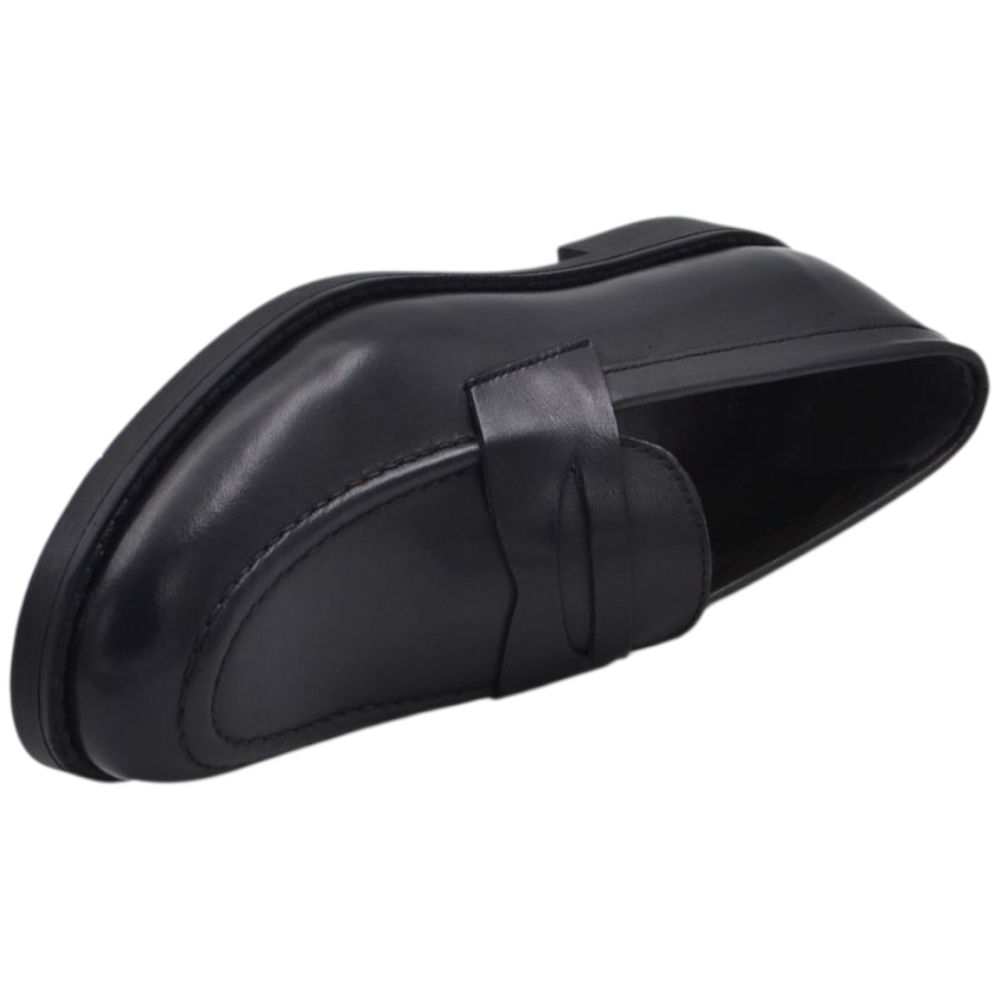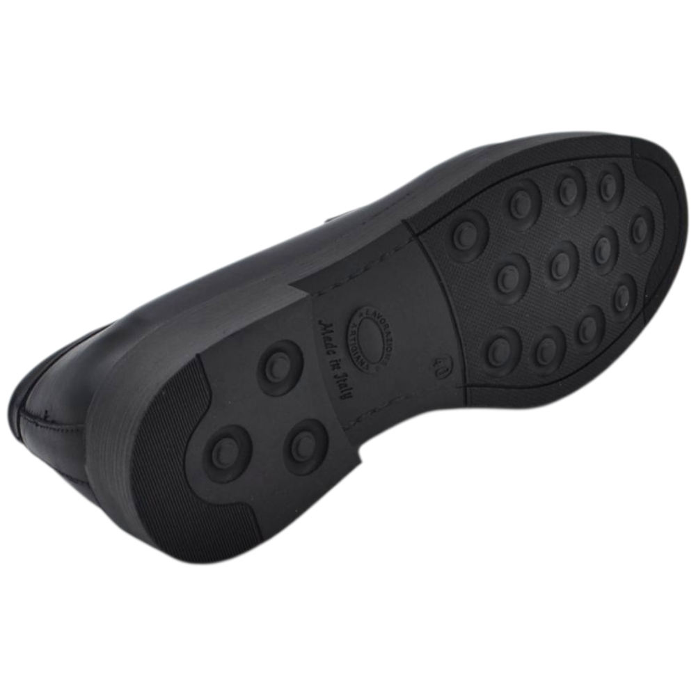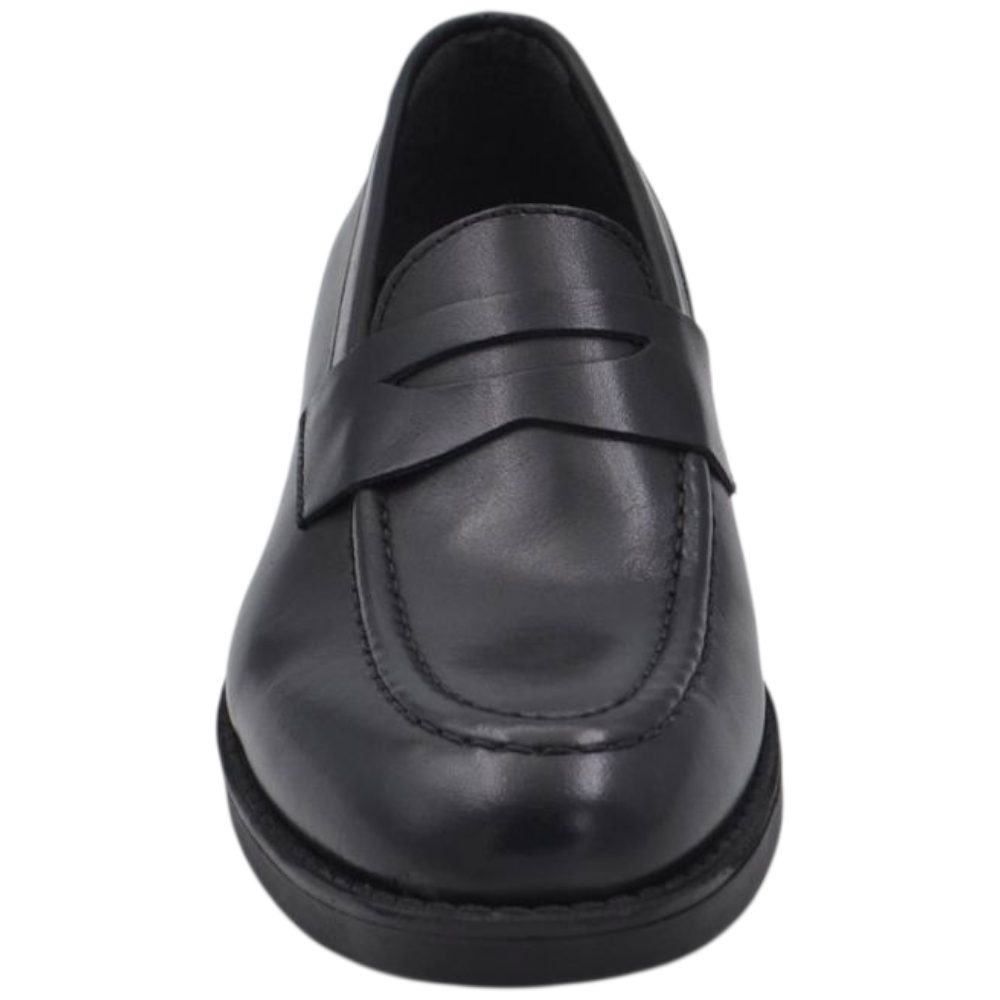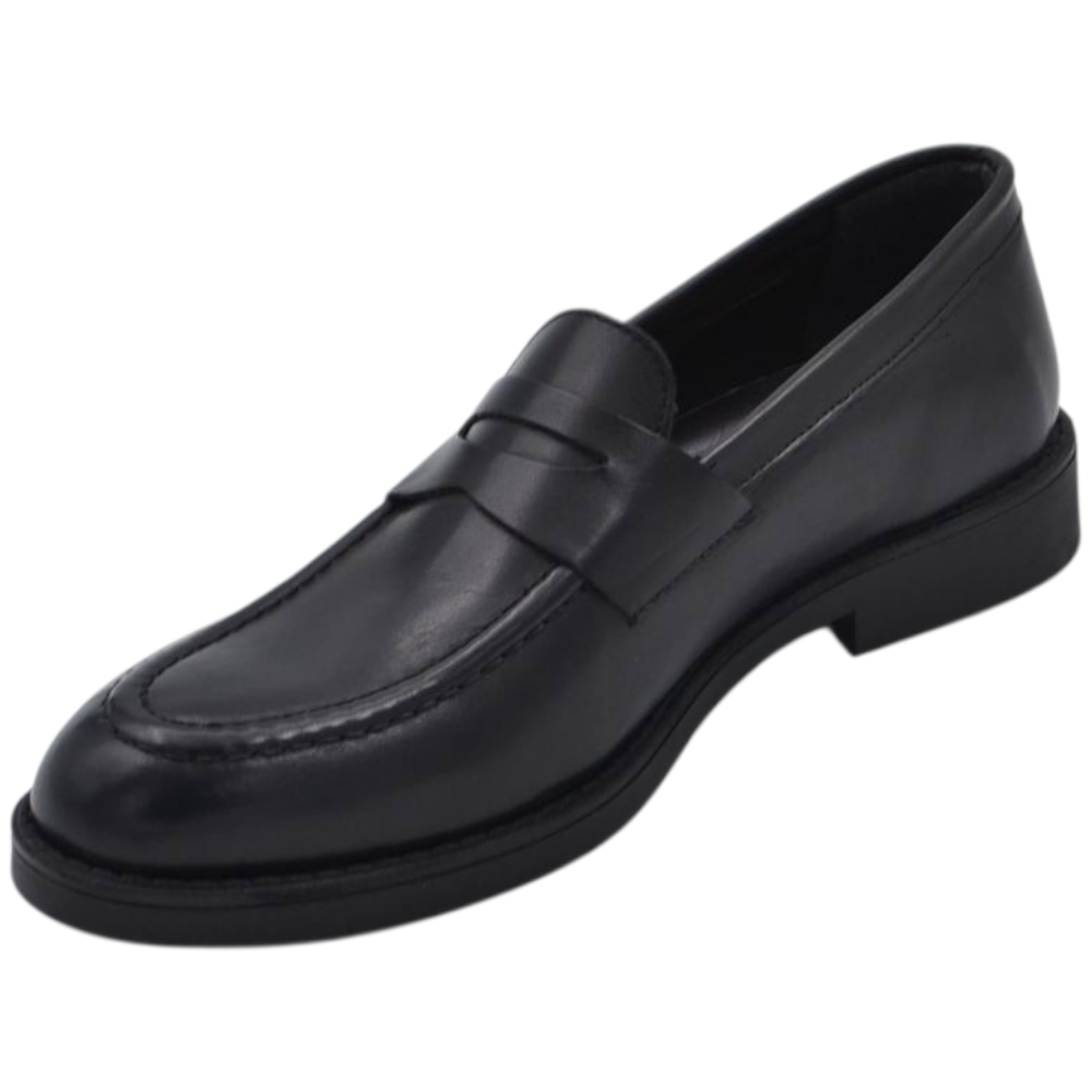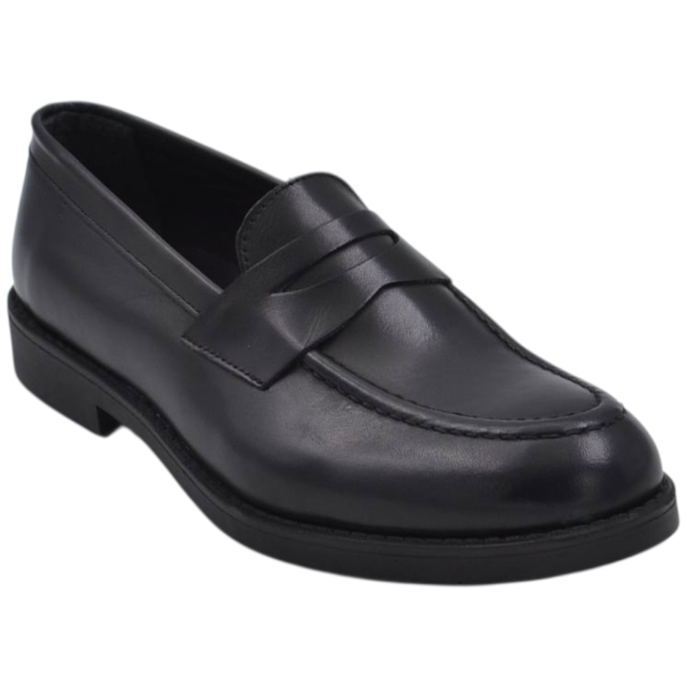 Scarpe uomo mocassino con bendina nero in vera pelle matte business fondo gomma liscio alto 2 cm