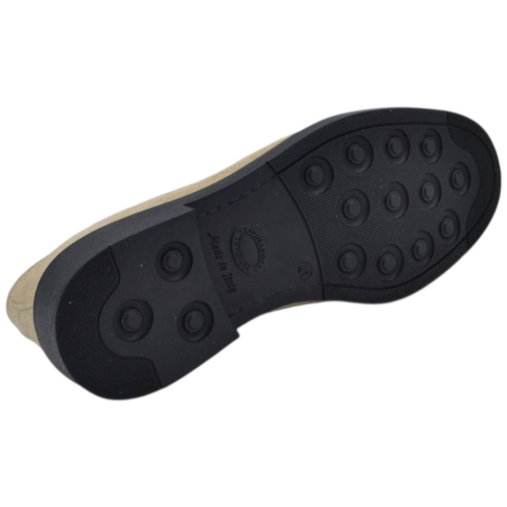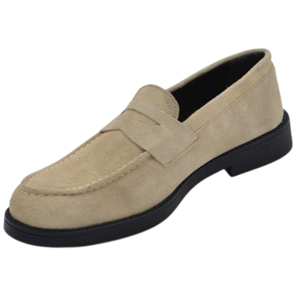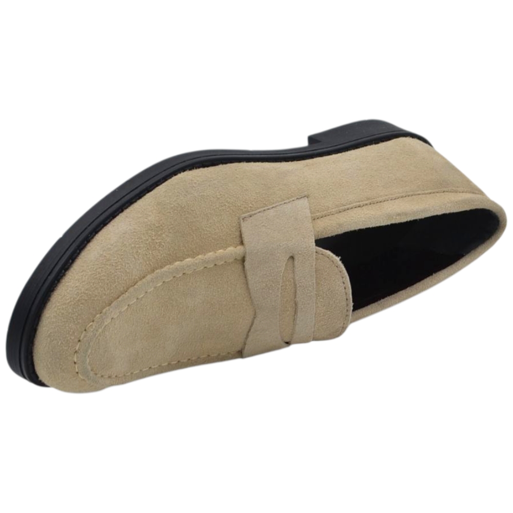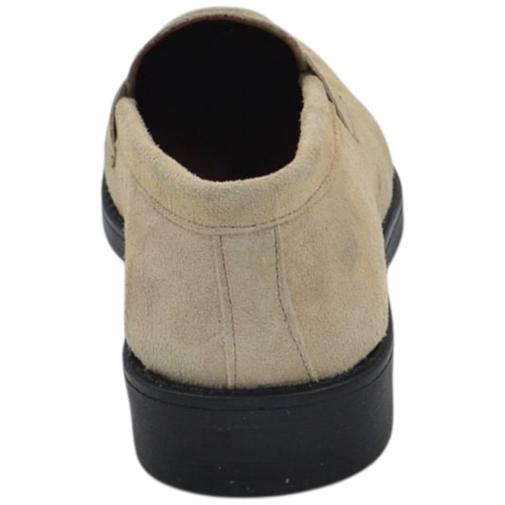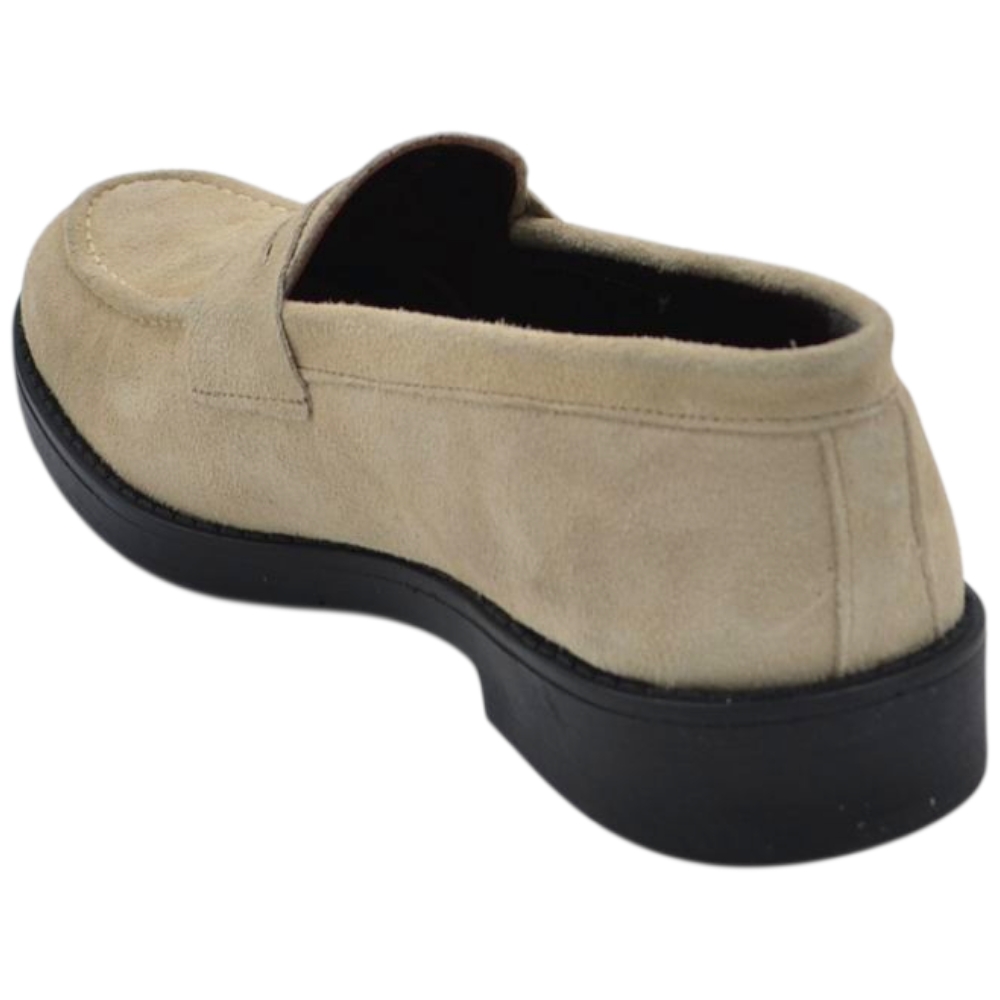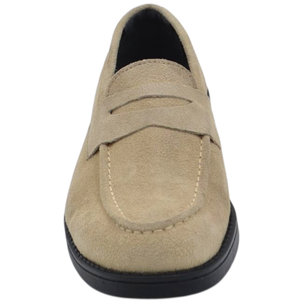Scarpe uomo mocassino con bendina beige in vera pelle scamosciata business fondo gomma liscio alto 2 cm