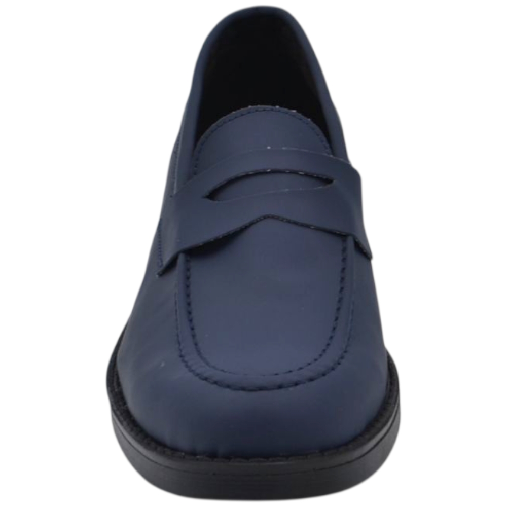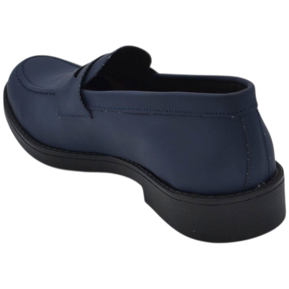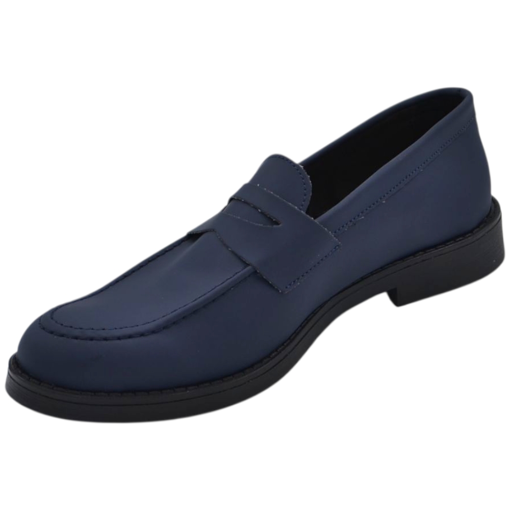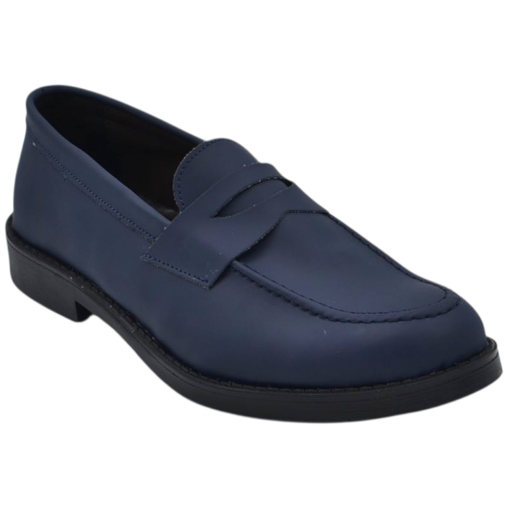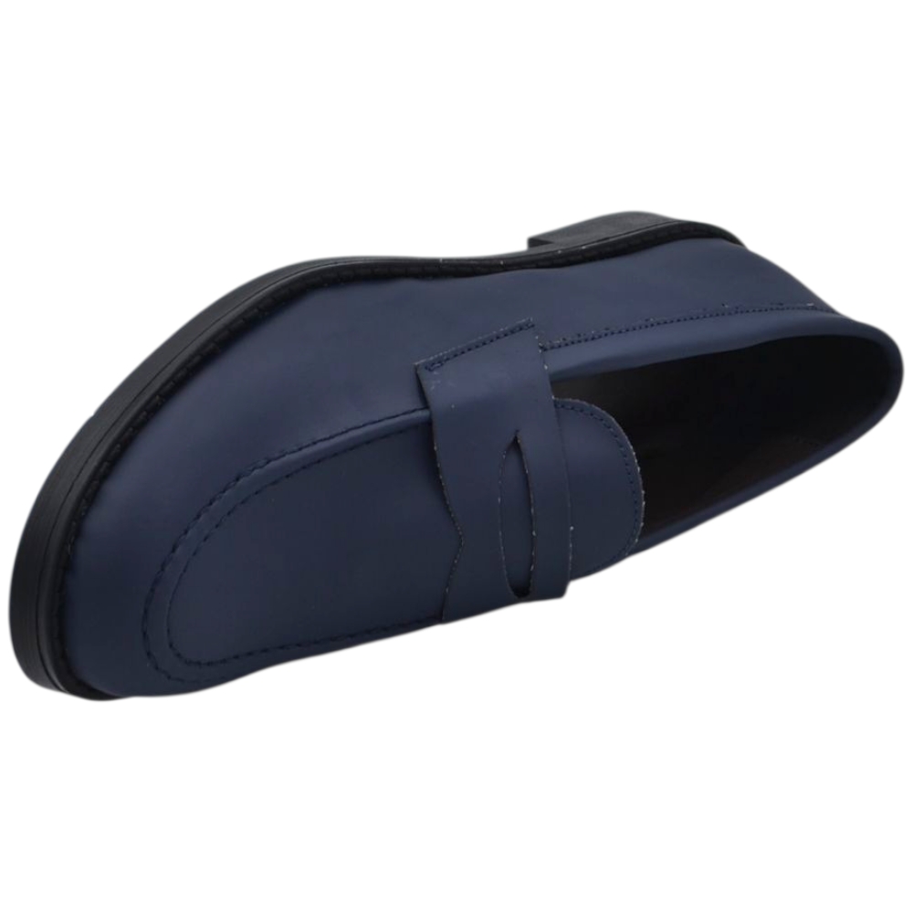 Scarpe uomo mocassino con bendina blu in vera pelle matte business fondo gomma liscio alto 2 cm