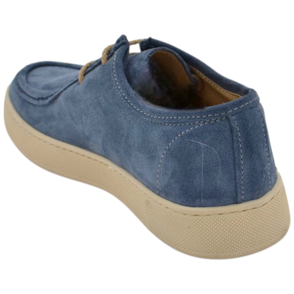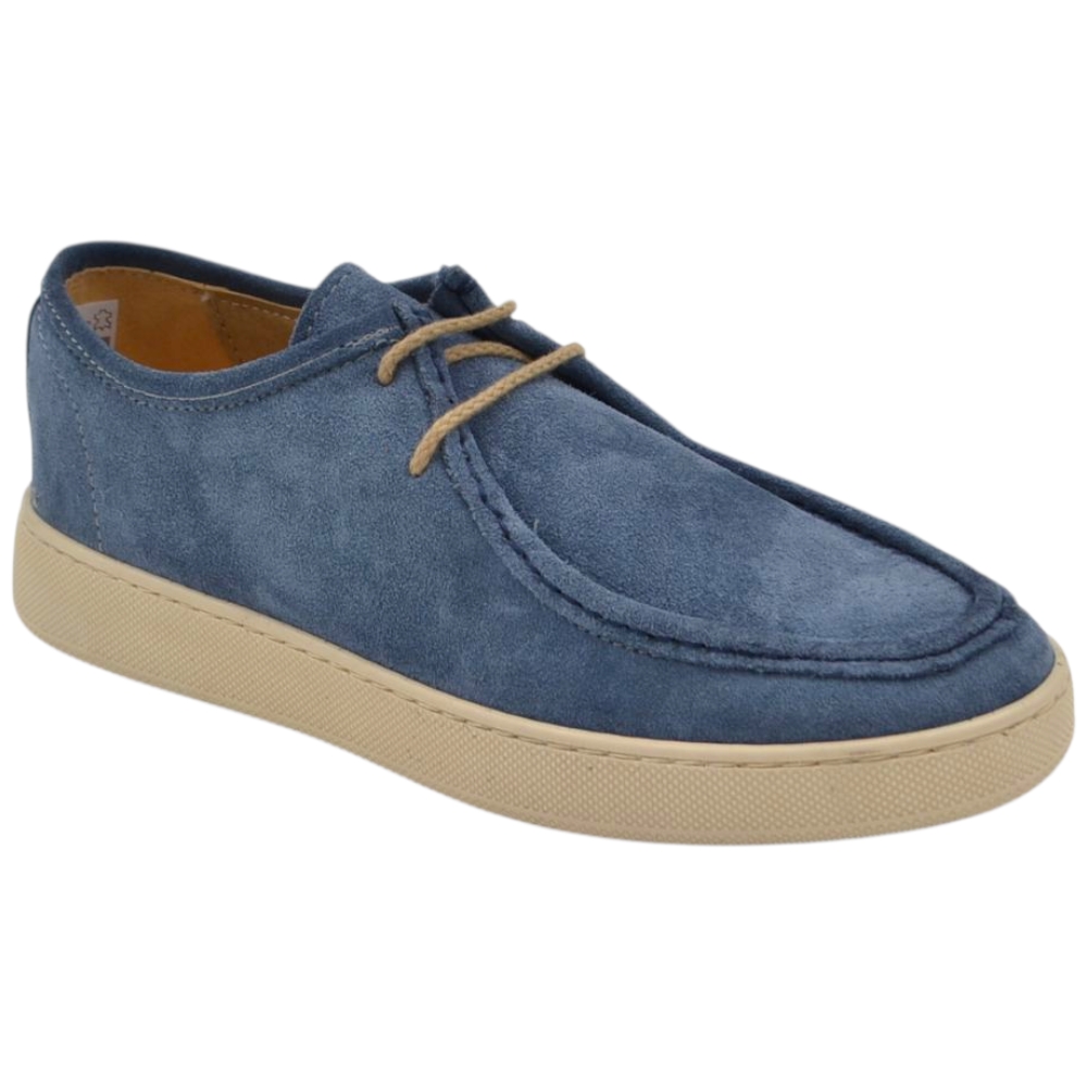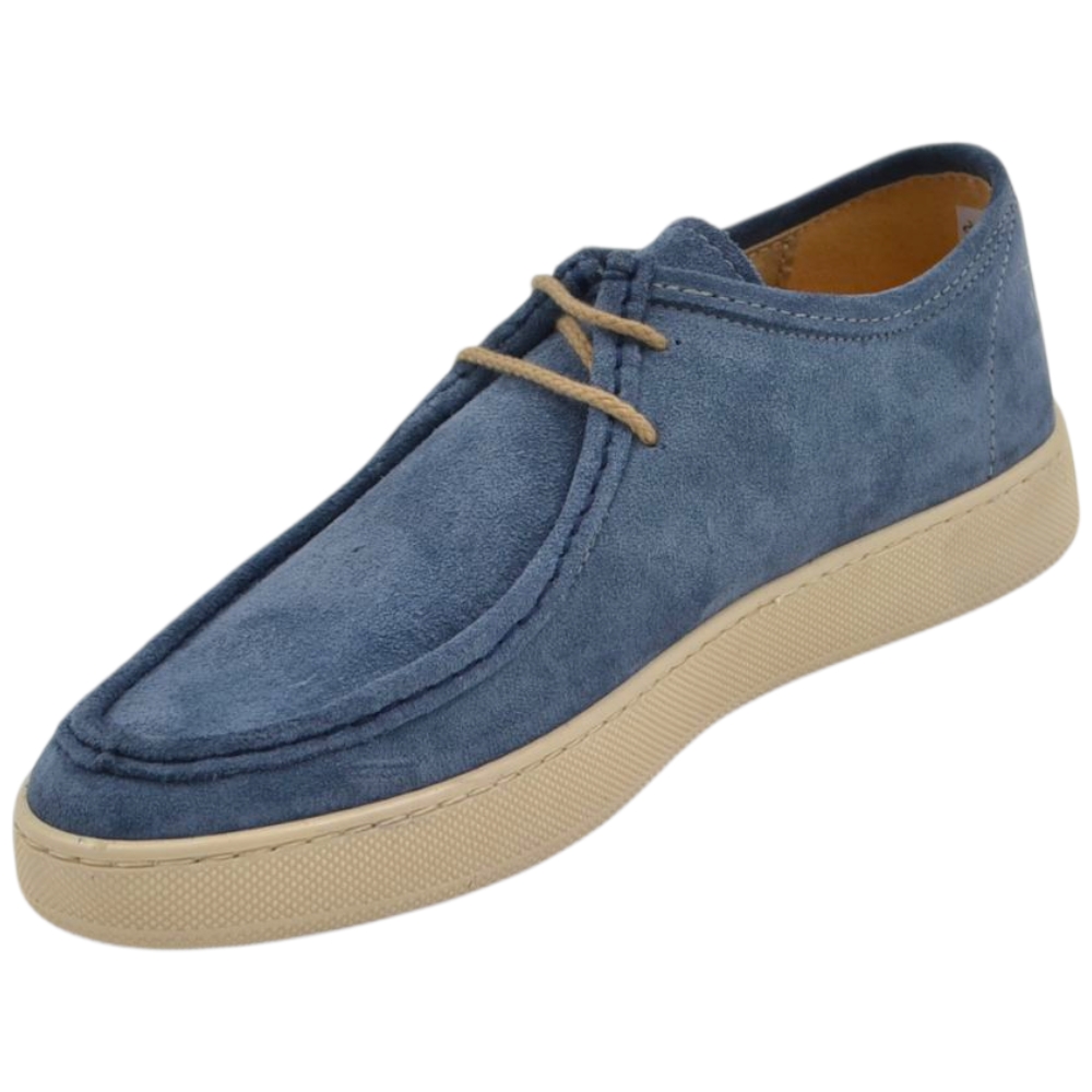 SCARPA UOMO MODELLO INGEGNERE IN VERA PELLE SCAMOSCIATO CELESTE CON GOMMA BIANCA ULTRALEGGERA 2 CM
