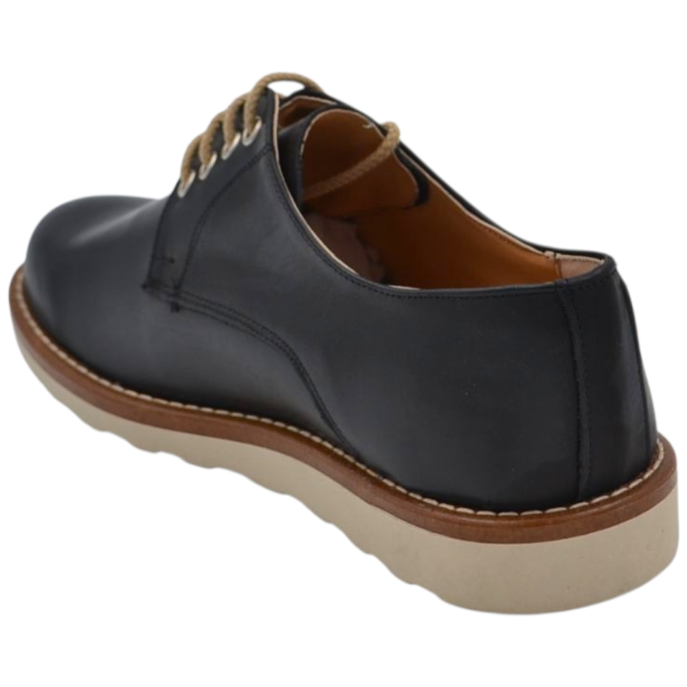 Scarpa uomo stringata in pelle nero spazzolato cucitura in punta fondo gomma zigrinato alto handmade