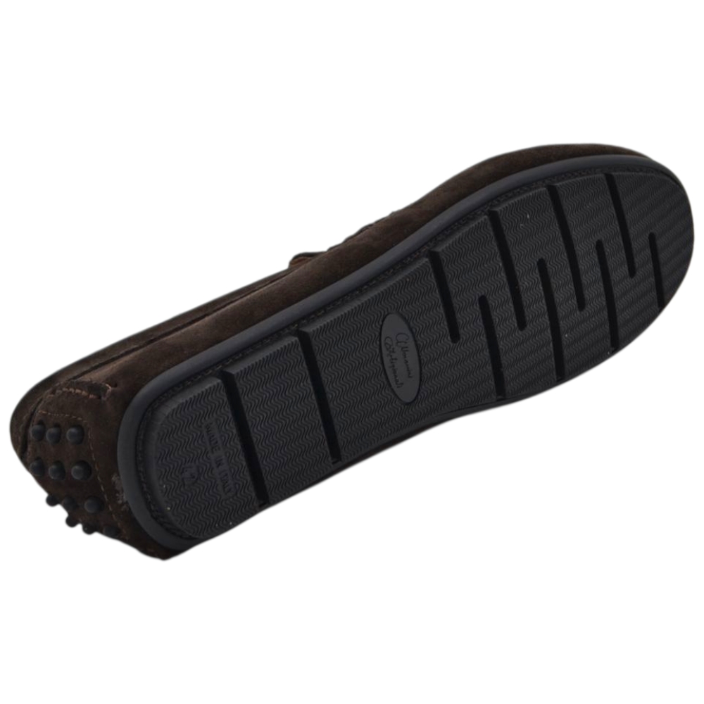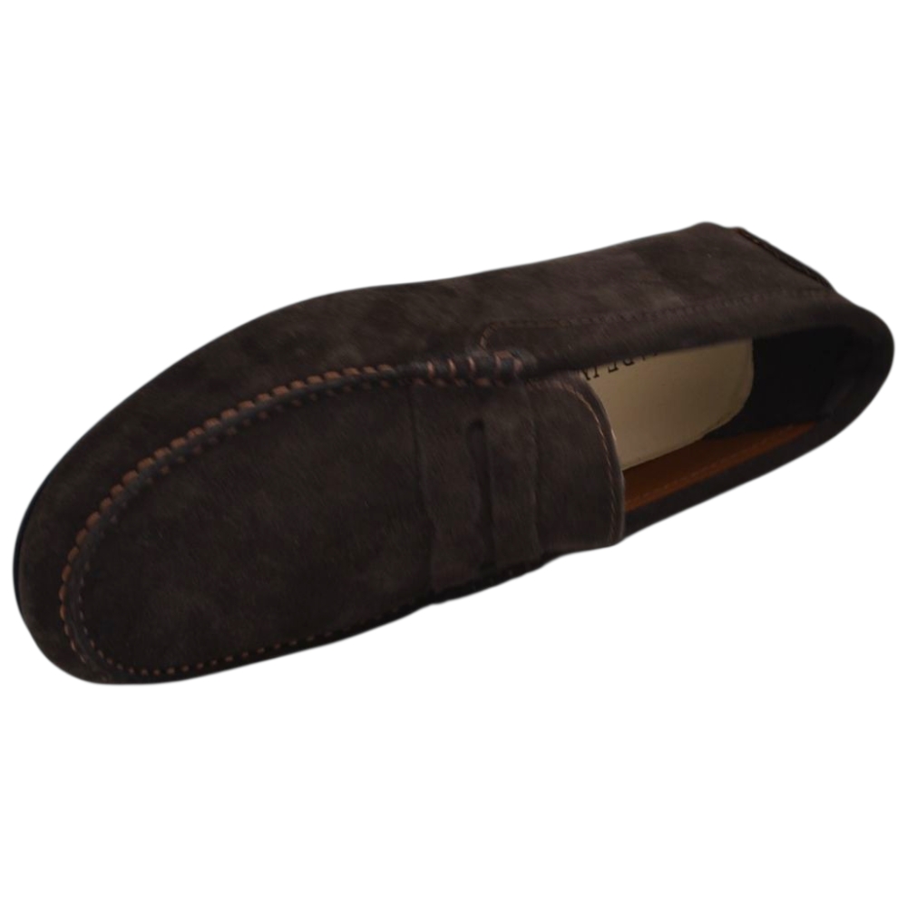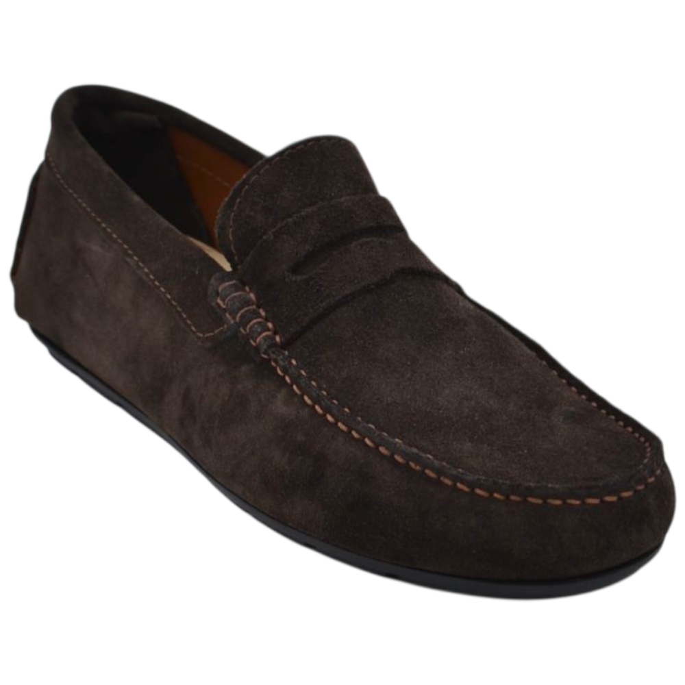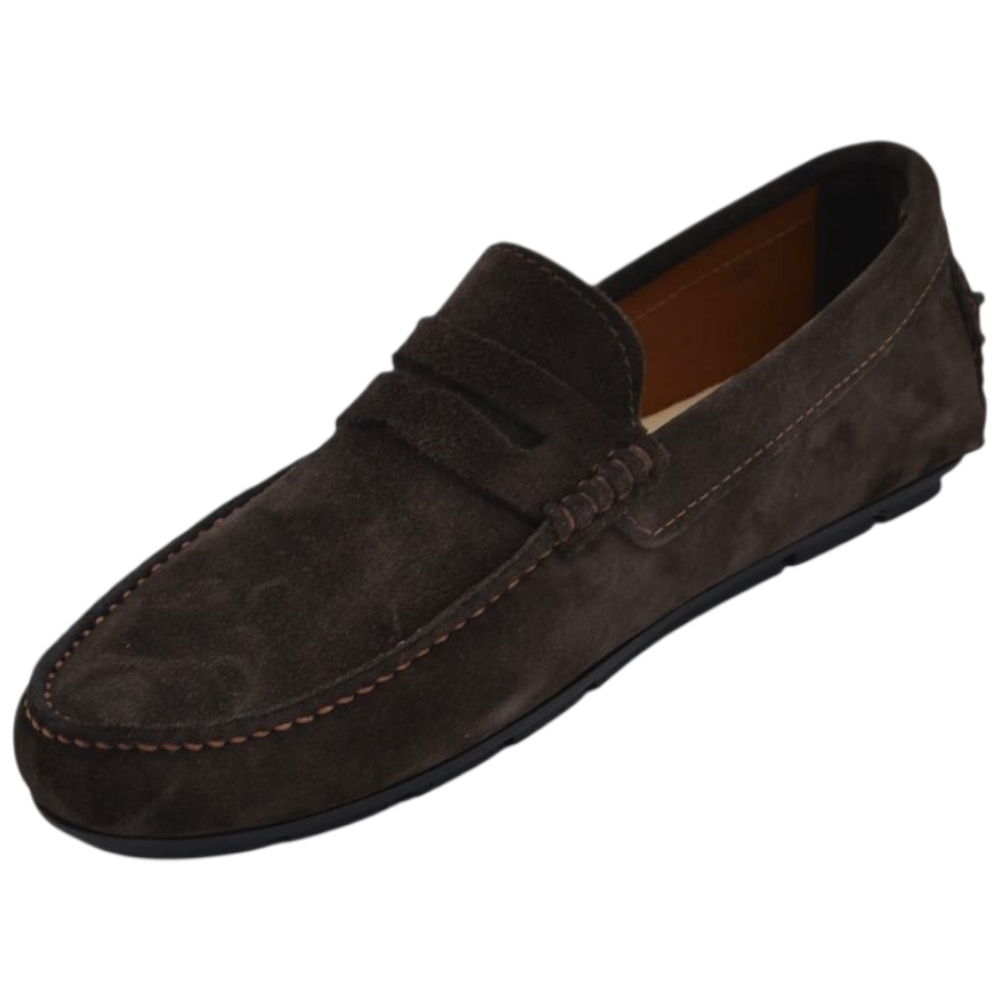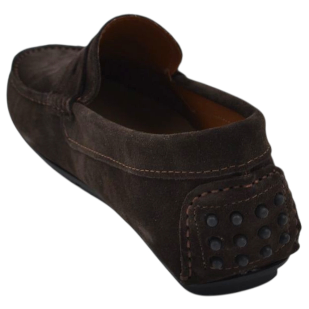 Scarpe uomo mocassino in vera pelle camoscio marrone con bendina suola in gomma piatta elegante