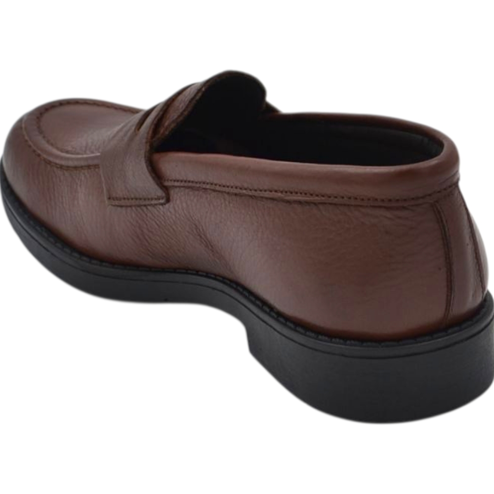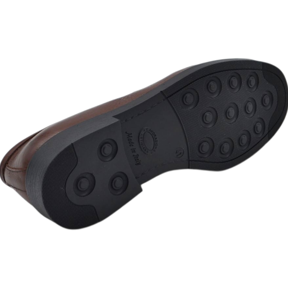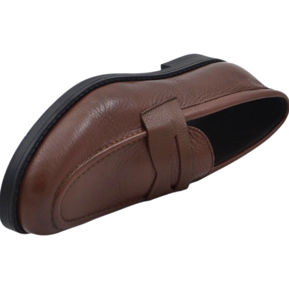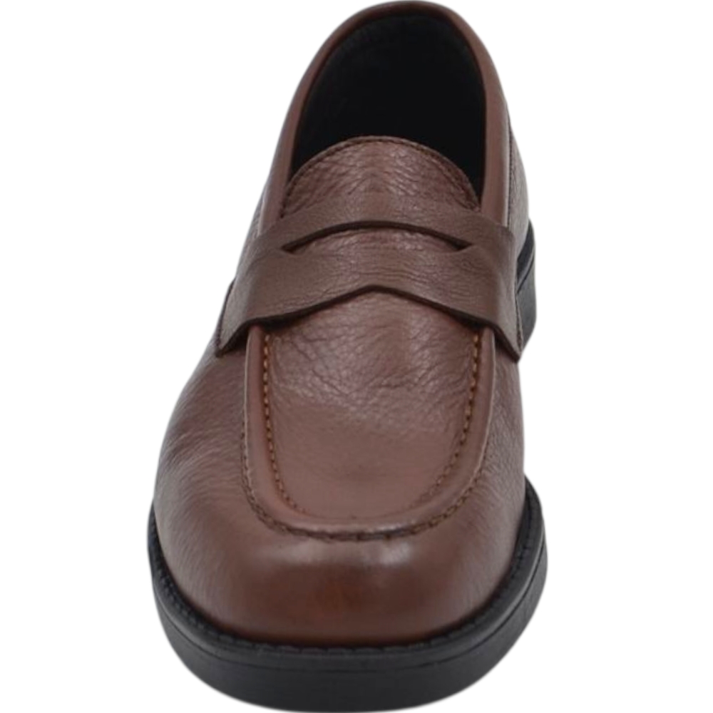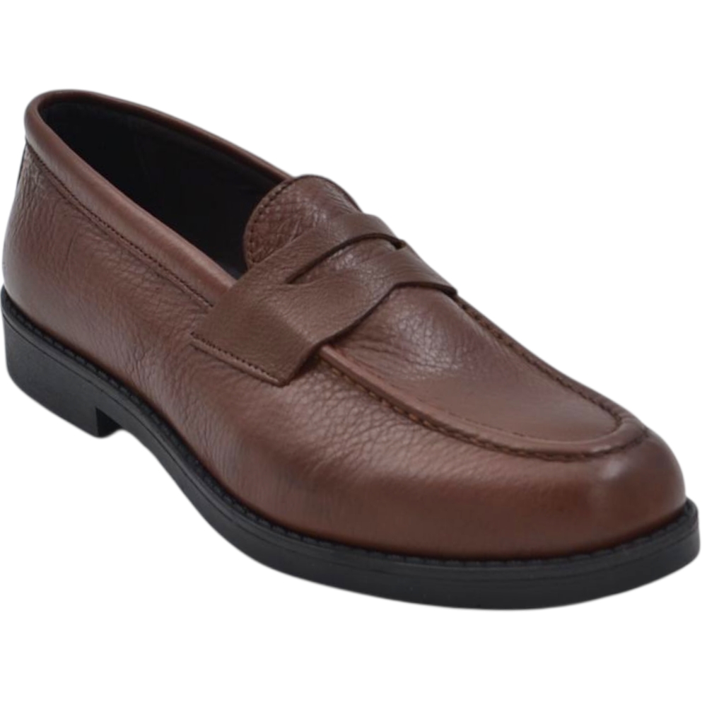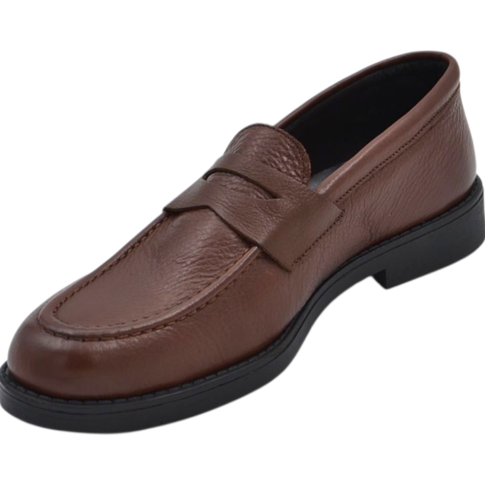 Mocassino uomo in vera pelle di nappa spazzolato marrone con fondo sottile in gomma handmade in italy.