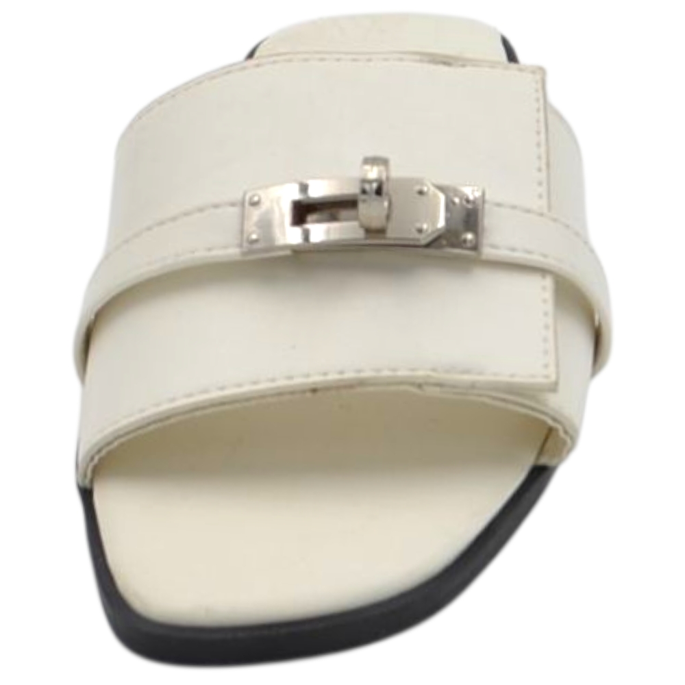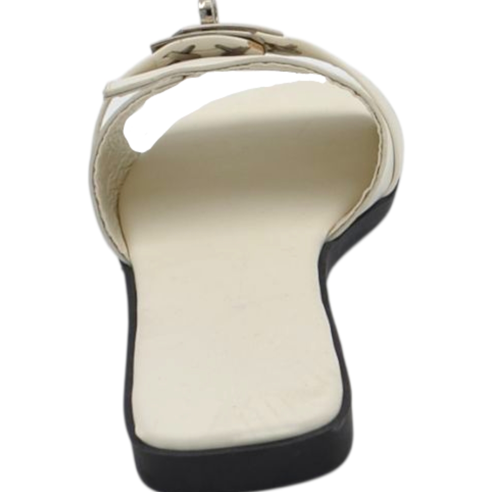 Pantofolina mule donna bianco in ecopelle con fibbia metallica argento tacco basso 1 cm senza chiusura