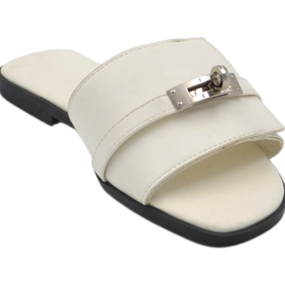 Sandalo flat dal design minimal e contemporaneo, perfetto per la stagione estiva. Realizzato in ecopelle liscia di colore bianco, dona un tocco vivace e sofisticato a qualsiasi outfit, dal casual al più ricercato.