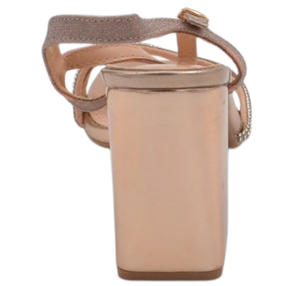Scarpe sandalo donna oro rosa pelle con fasce a incrocio satinate e chiusura alla caviglia sling back tacco largo 5cm