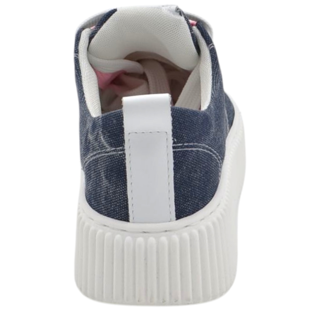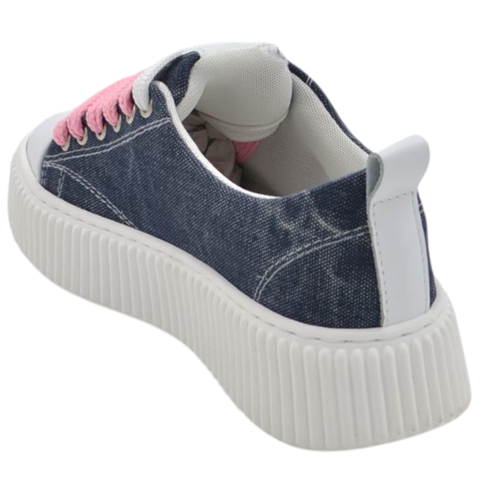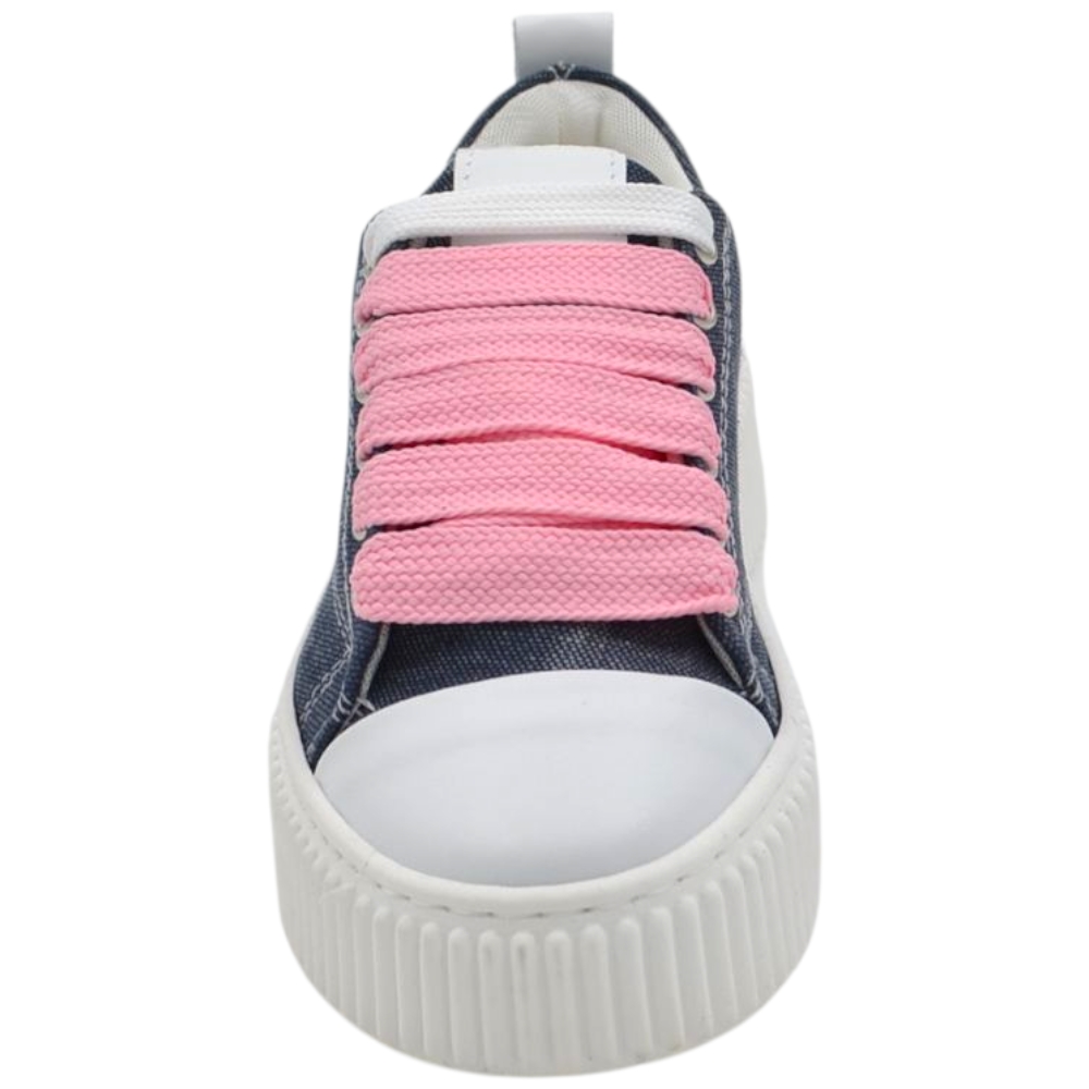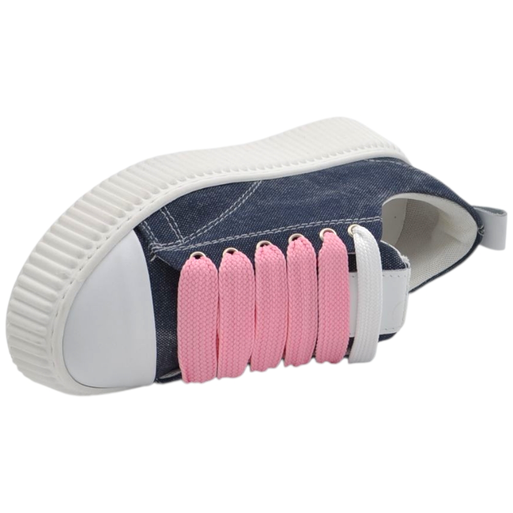 Sneakers da uomo dal design casual e contemporaneo ideali per completare outfit informali e dinamici. La tomaia è realizzata in resistente tessuto effetto denim blu che garantisce traspirabilità leggerezza e comfort durante tutta la giornata. Il design è valorizzato da un sistema di allacciatura originale con lacci rosa e bianchi che dona un tocco di stile moderno e distintivo.
