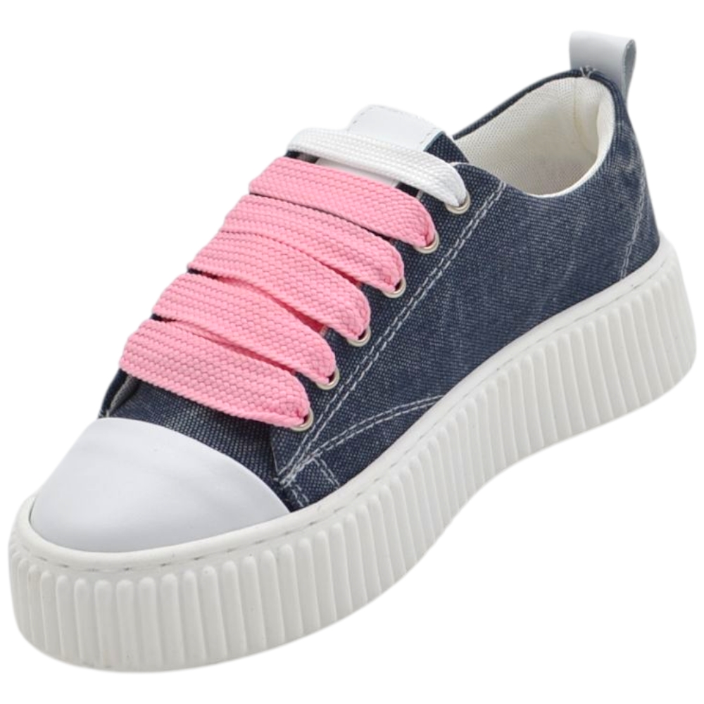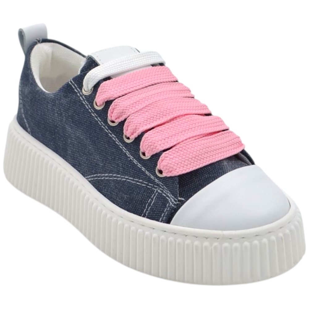 Sneakers uomo tela blu denim lacci rosa e bianchi fondo in gomma antiscivolo alto 4,5 cm punta rinforzata scarpe casual