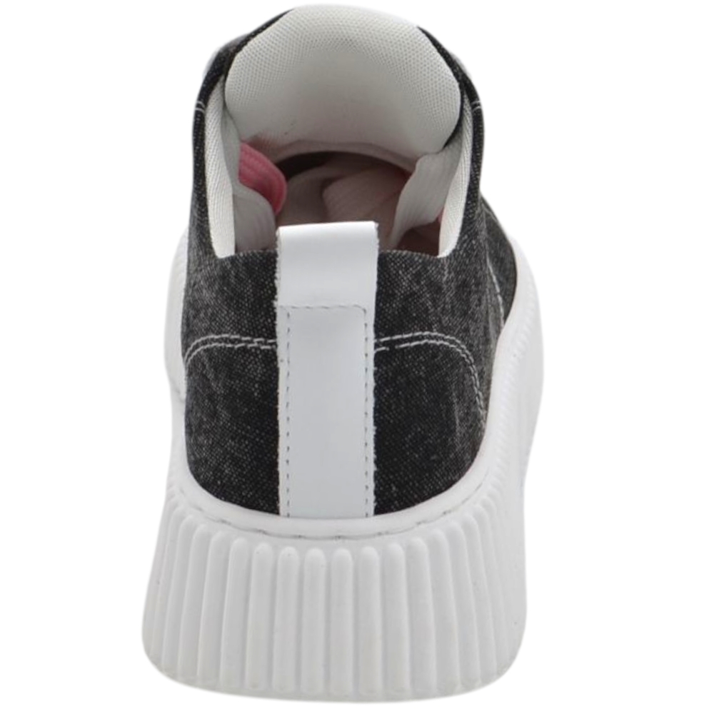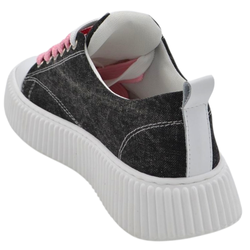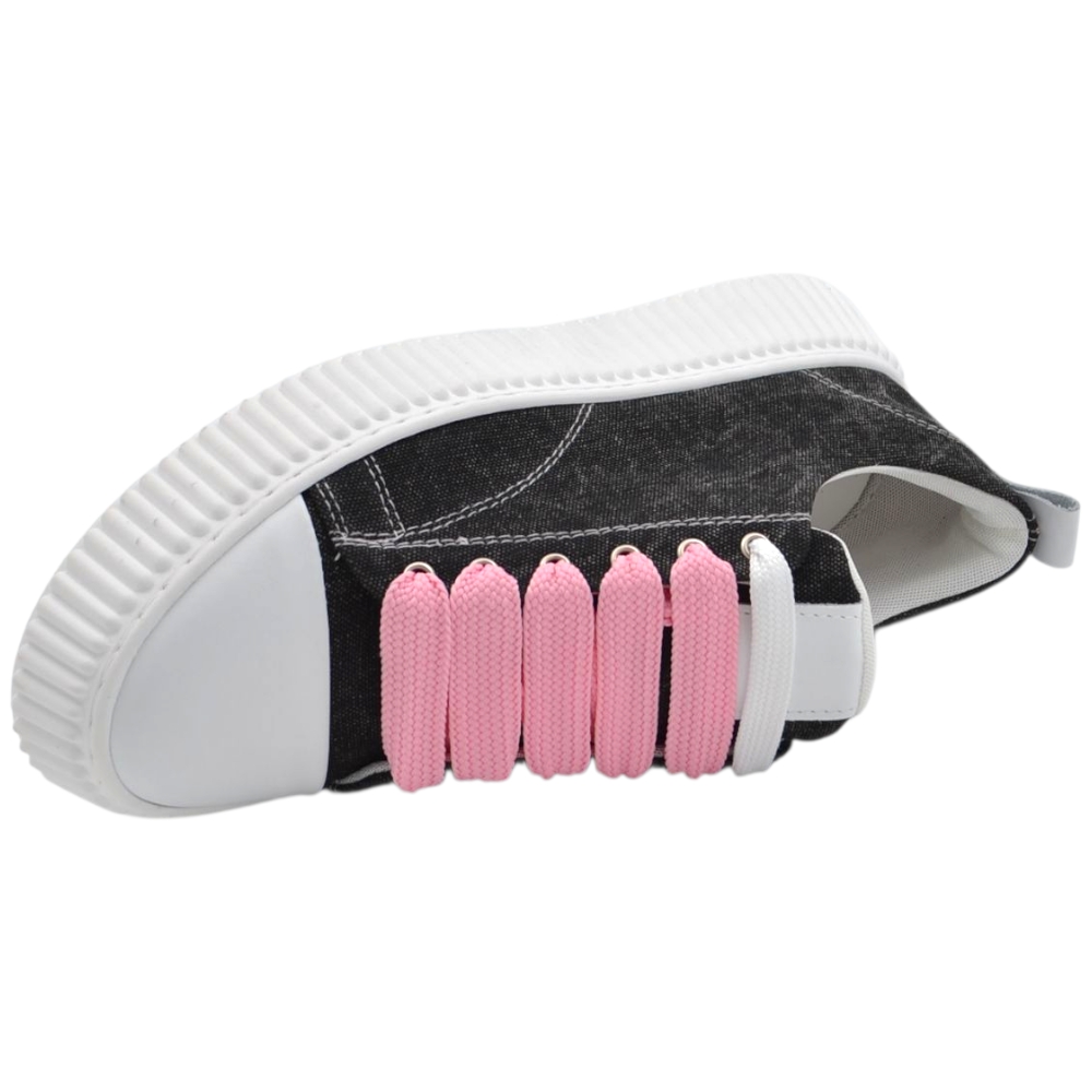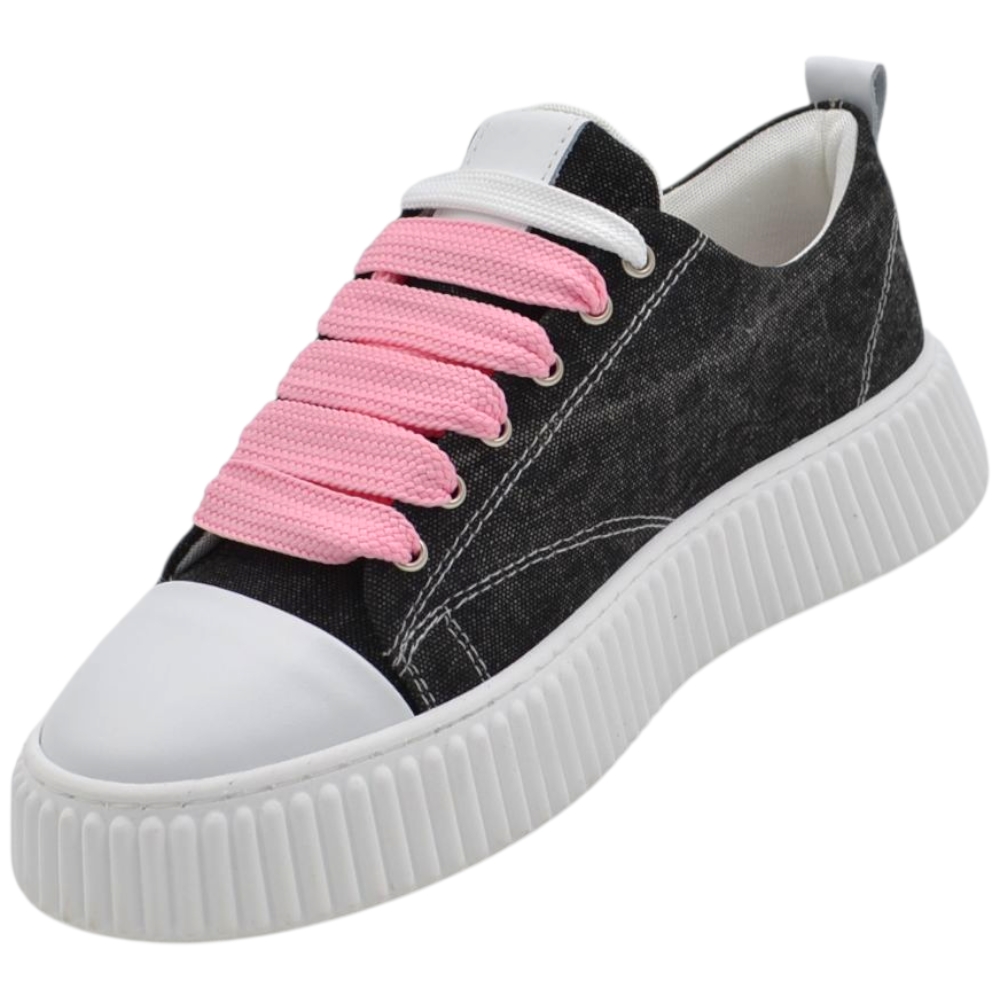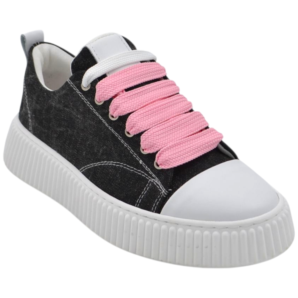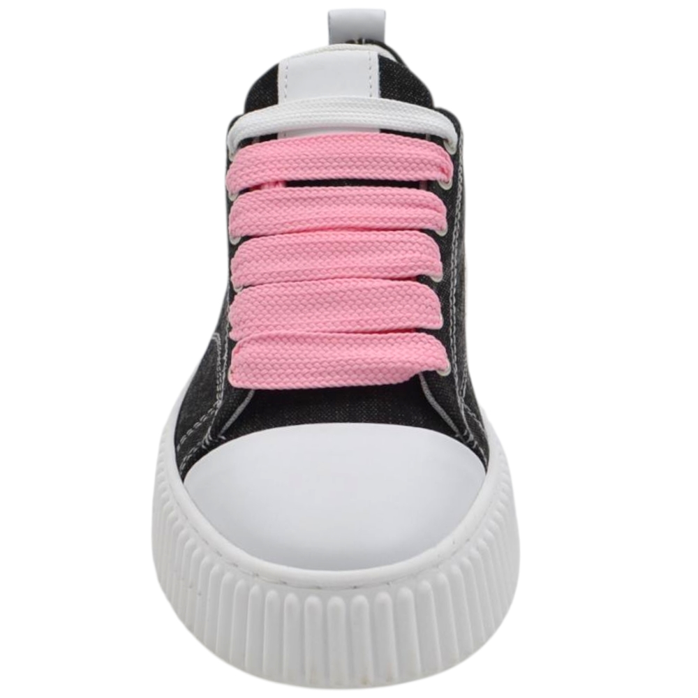 Sneakers uomo tela nero denim lacci rosa e bianchi fondo in gomma antiscivolo alto 4,5 cm punta rinforzata scarpe casual