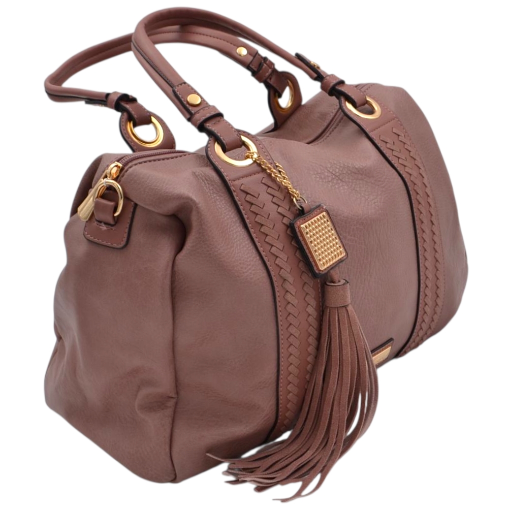 Borsa morbida donna firmata charro rosa a spalla bauletto con accessorio frangia e zip dorate